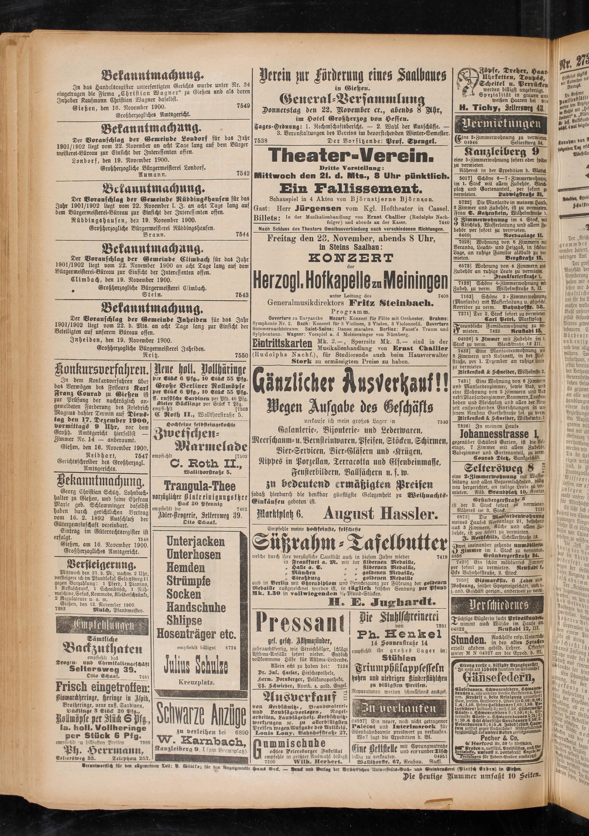 21.11.1900 Erstes Blatt