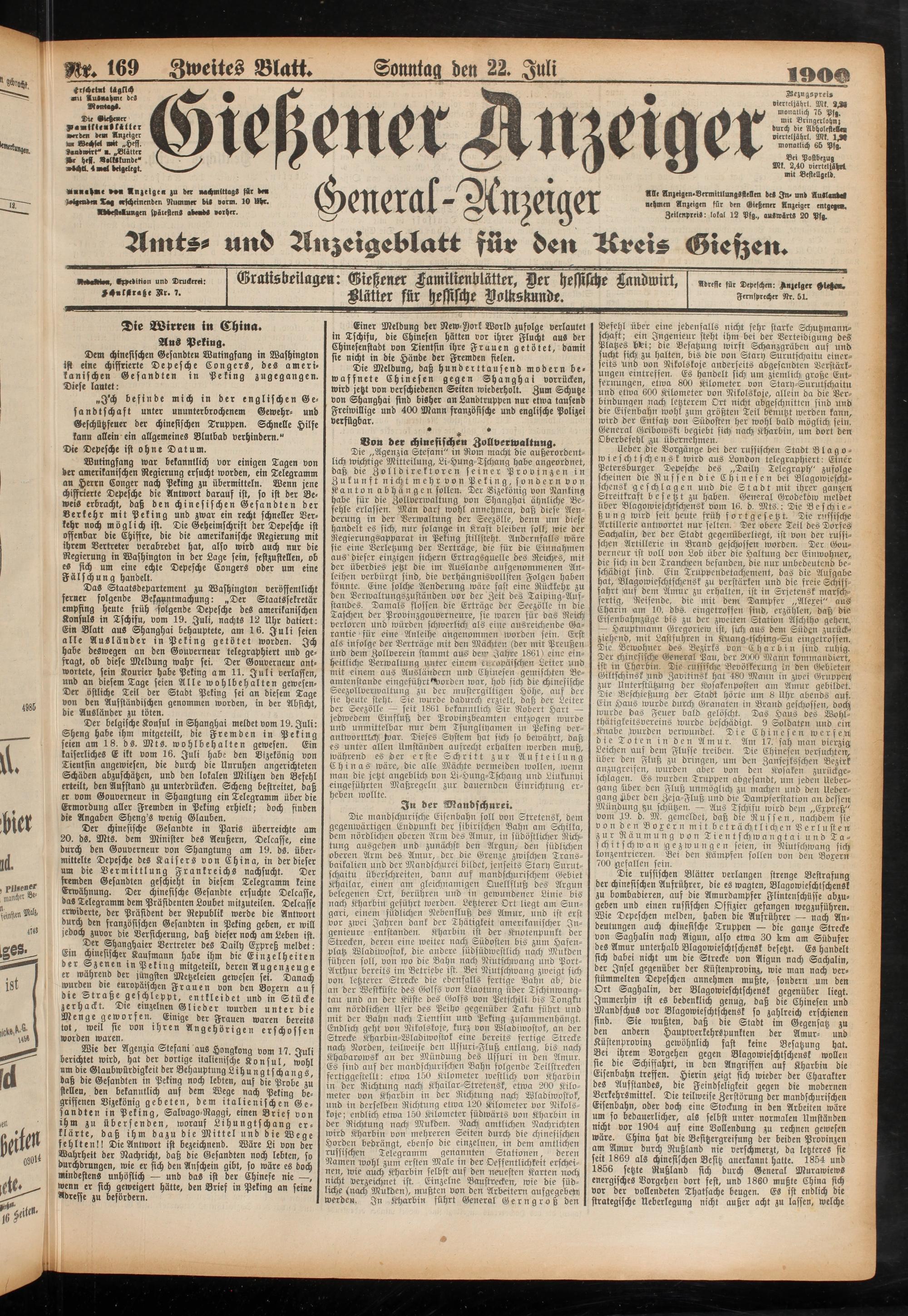 22.7.1900 Zweites Blatt
