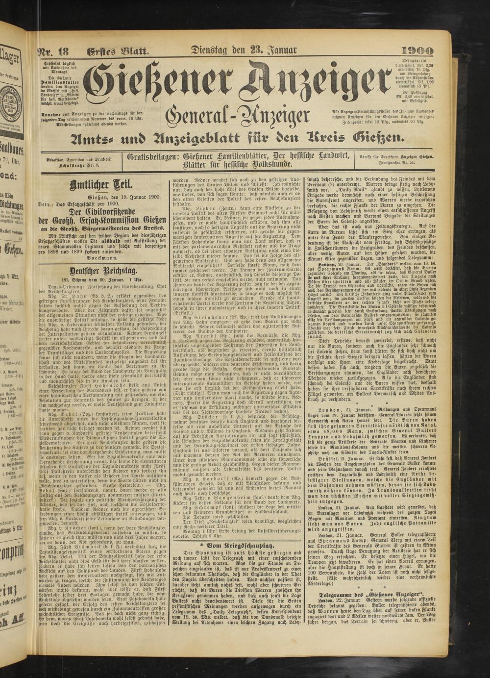 23.1.1900 Erstes Blatt