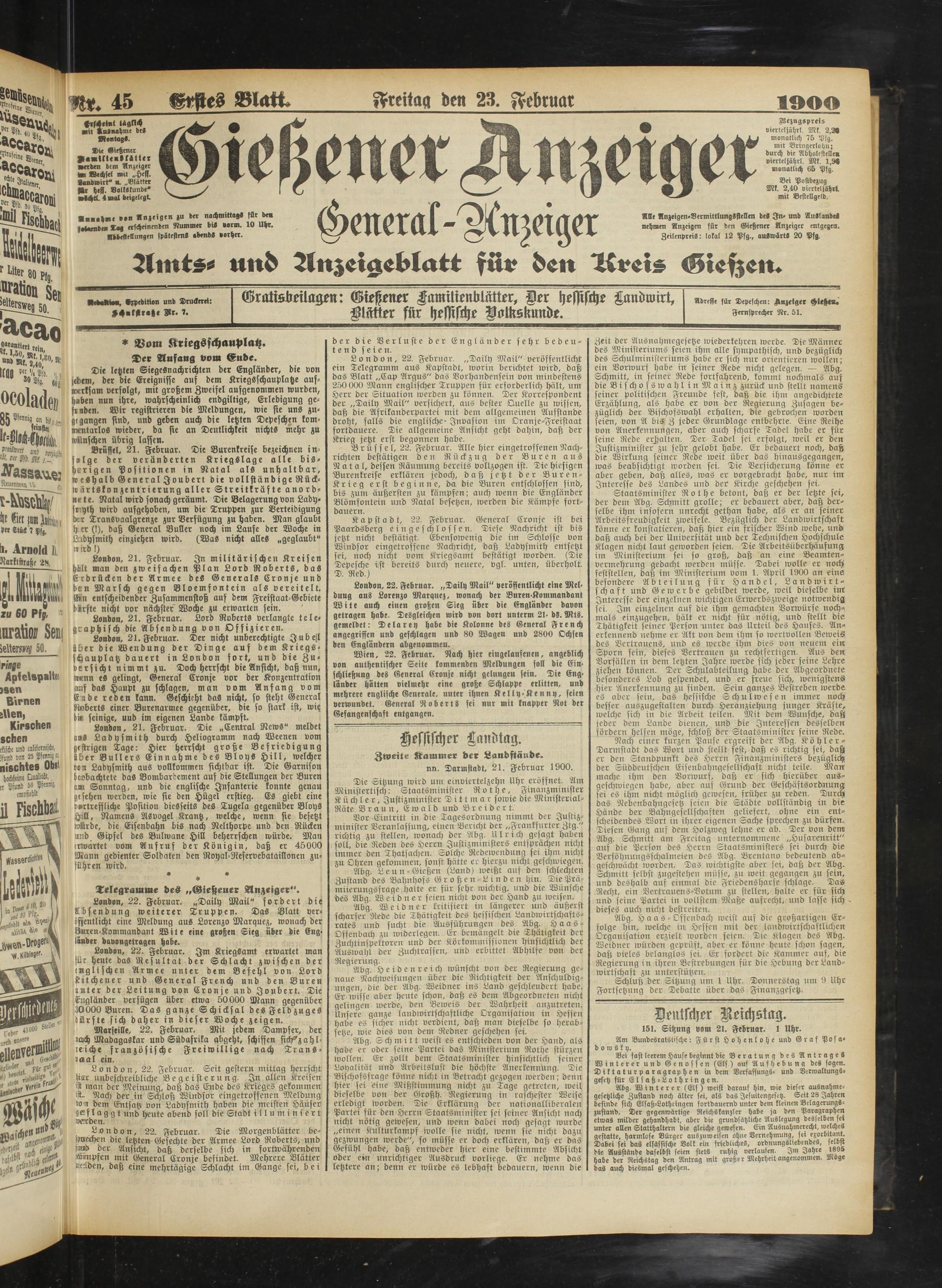 23.2.1900 Erstes Blatt