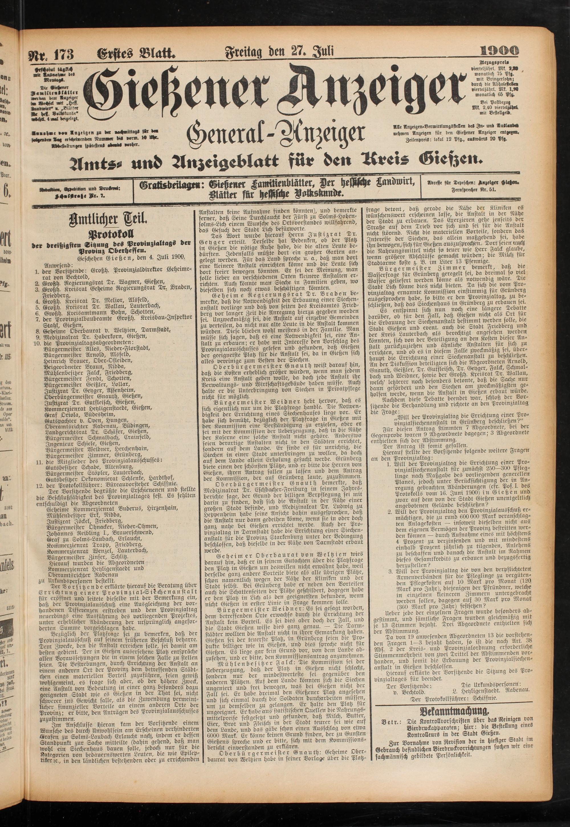 27.7.1900 Erstes Blatt