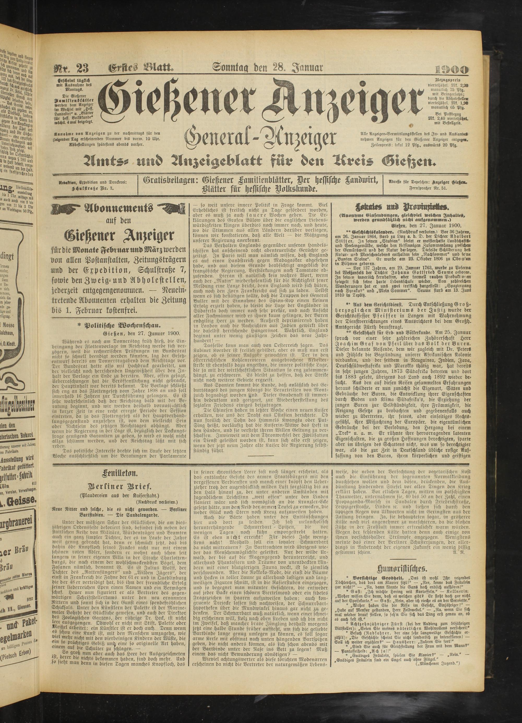 28.1.1900 Erstes Blatt