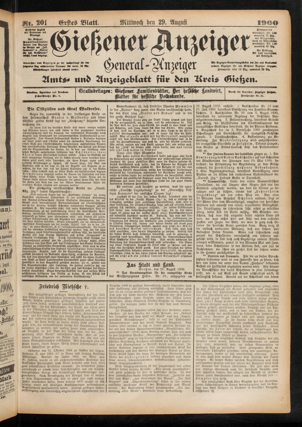 29.8.1900 Erstes Blatt