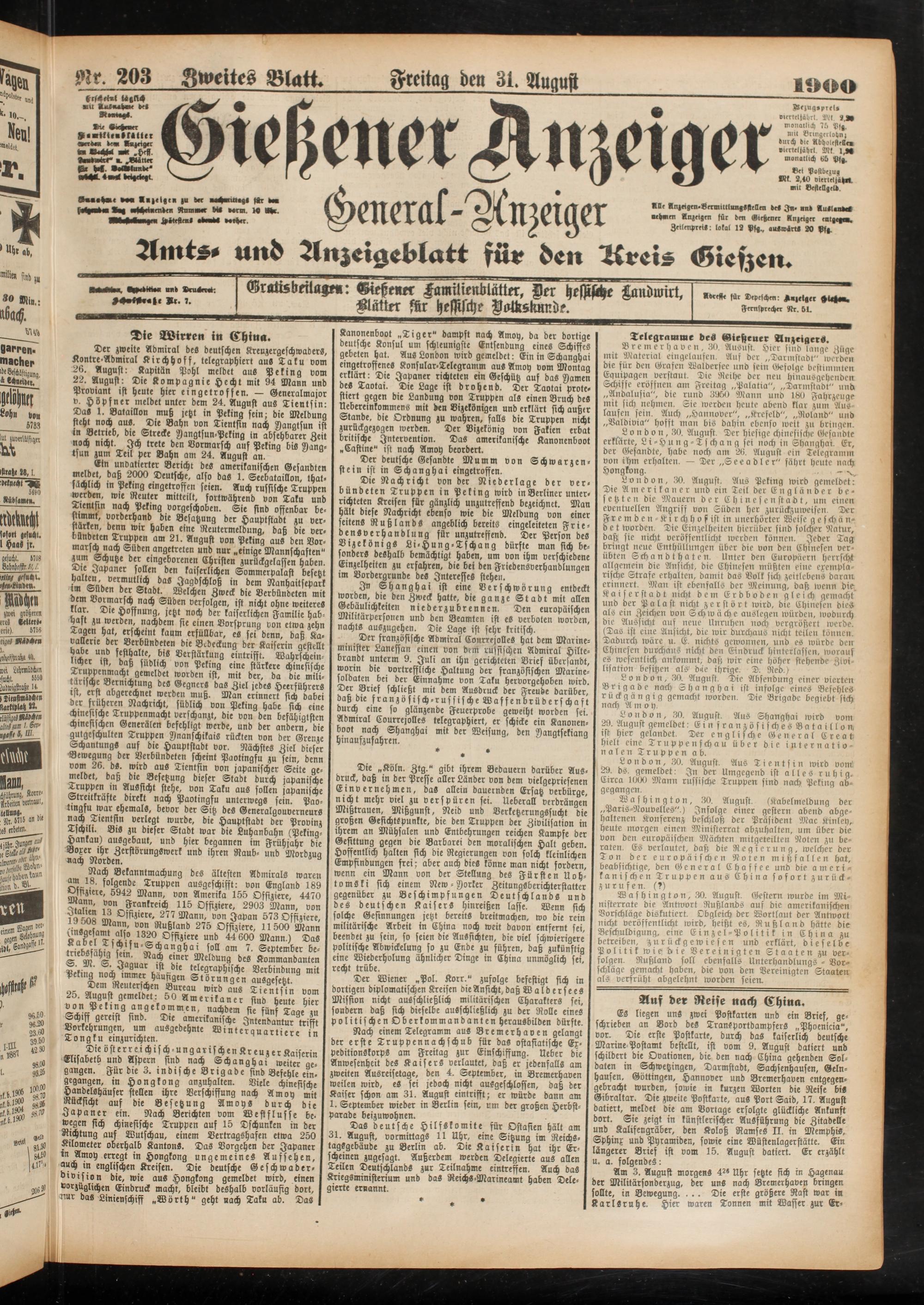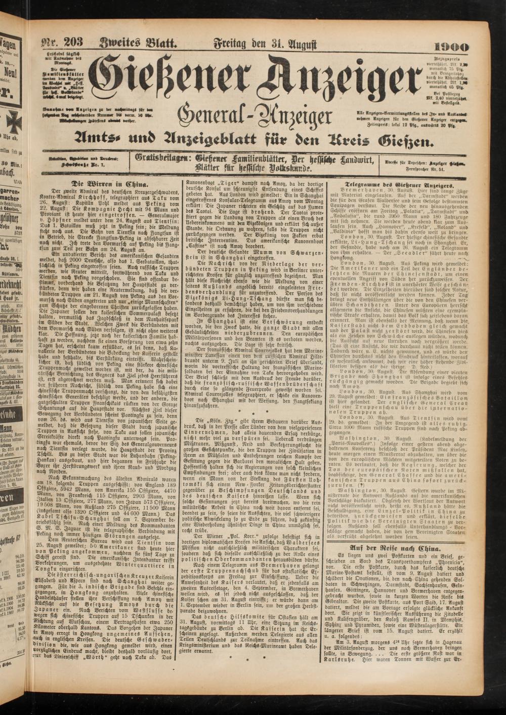 31.8.1900 Zweites Blatt