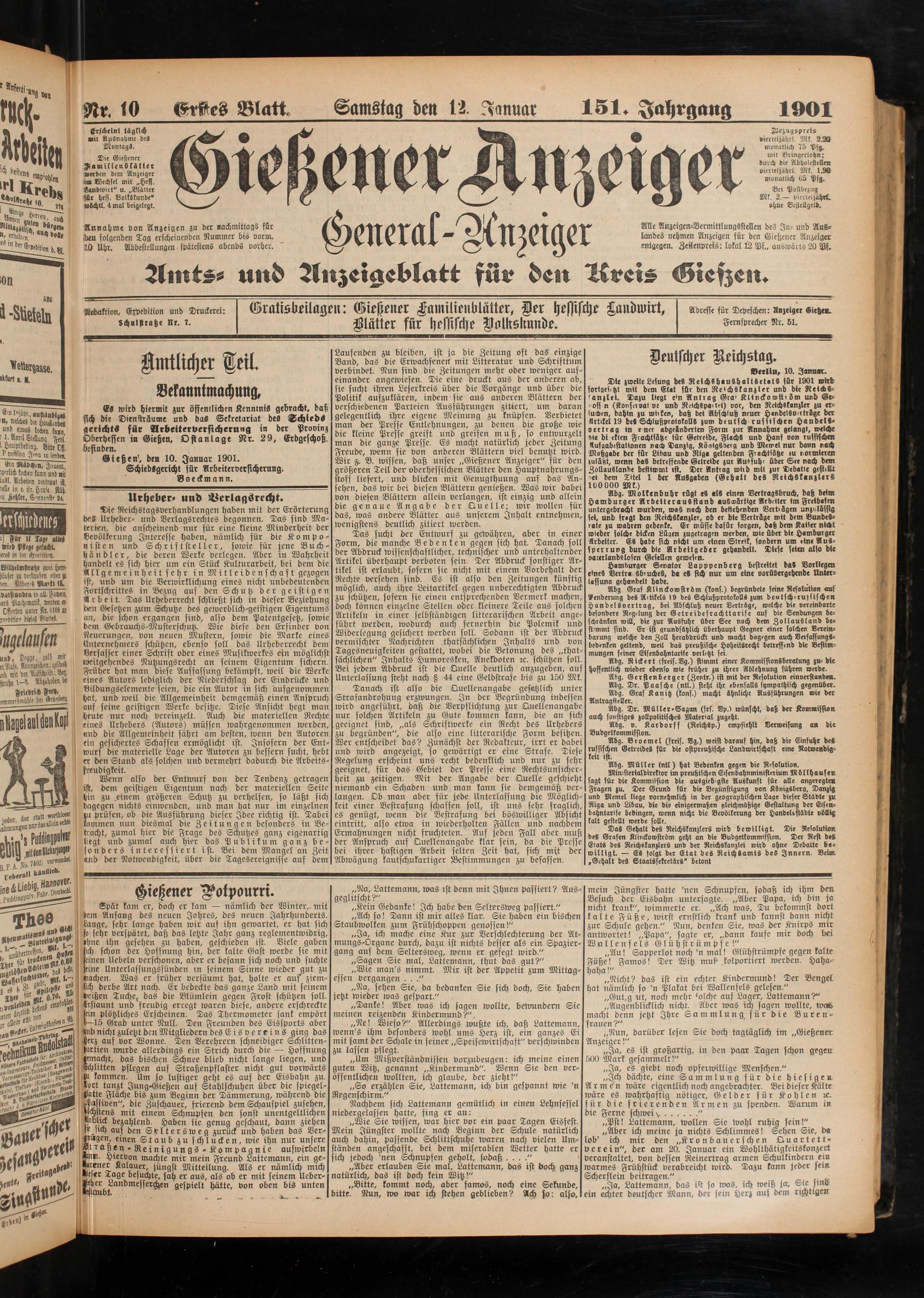 12.1.1901 Erstes Blatt