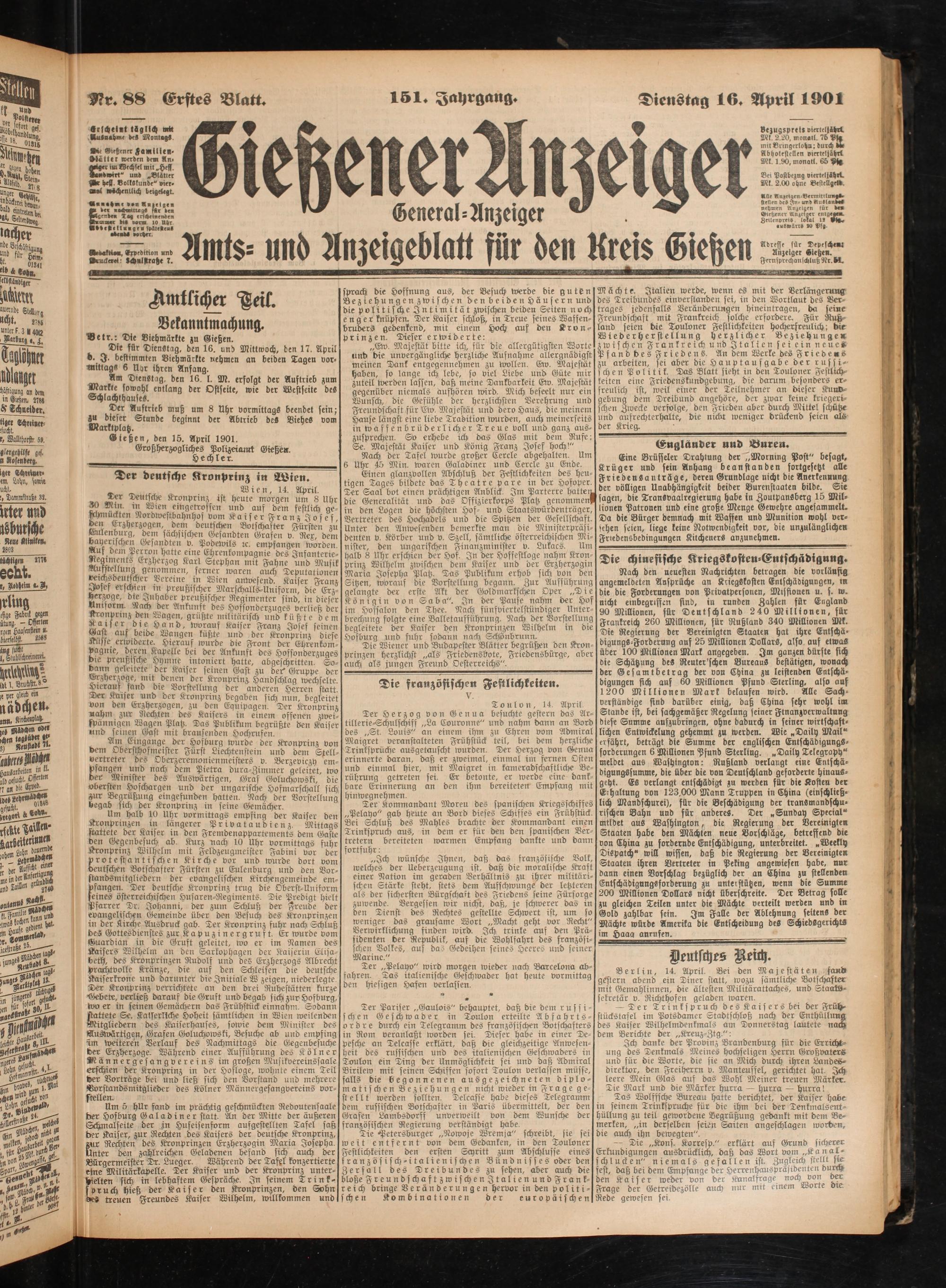 16.4.1901 Erstes Blatt
