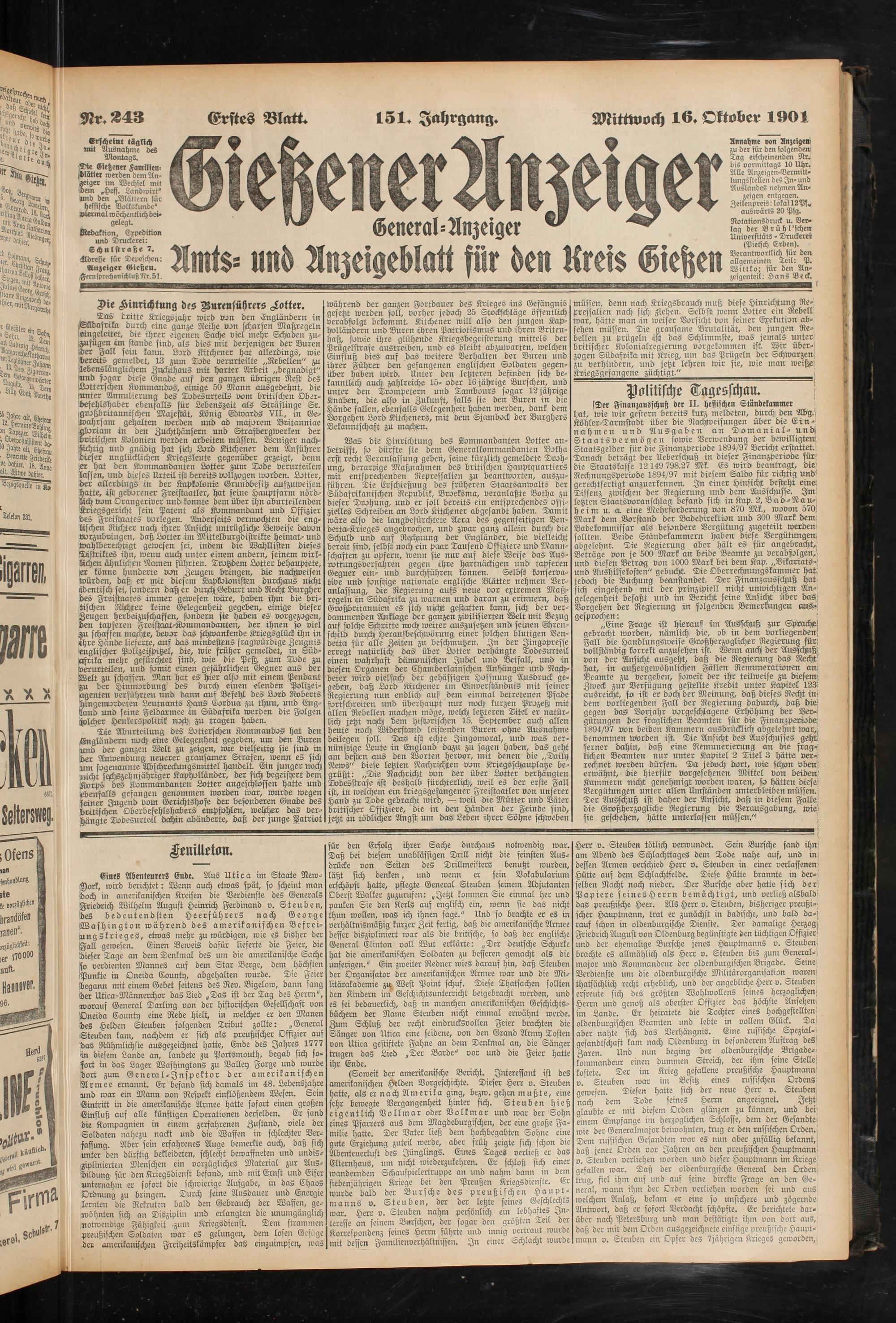 16.10.1901 Erstes Blatt