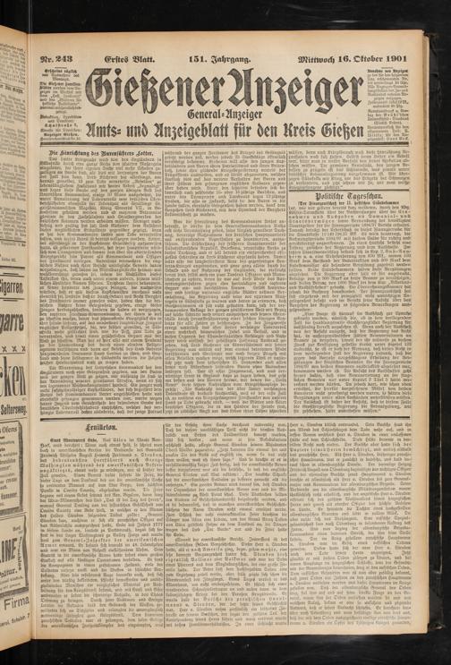 Gießener Anzeiger. 1868-1943