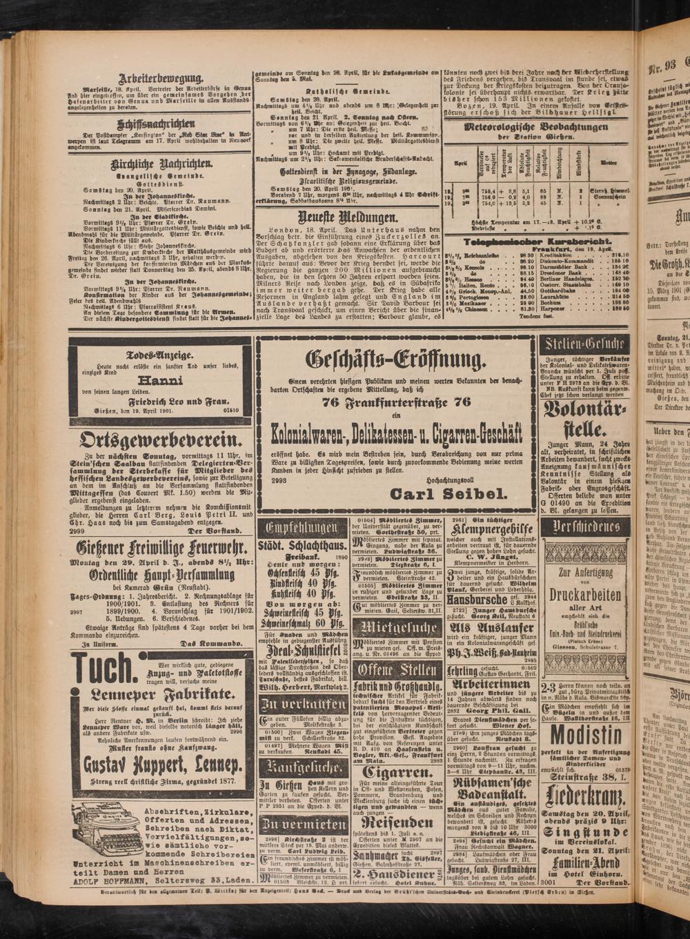 20.4.1901 Zweites Blatt
