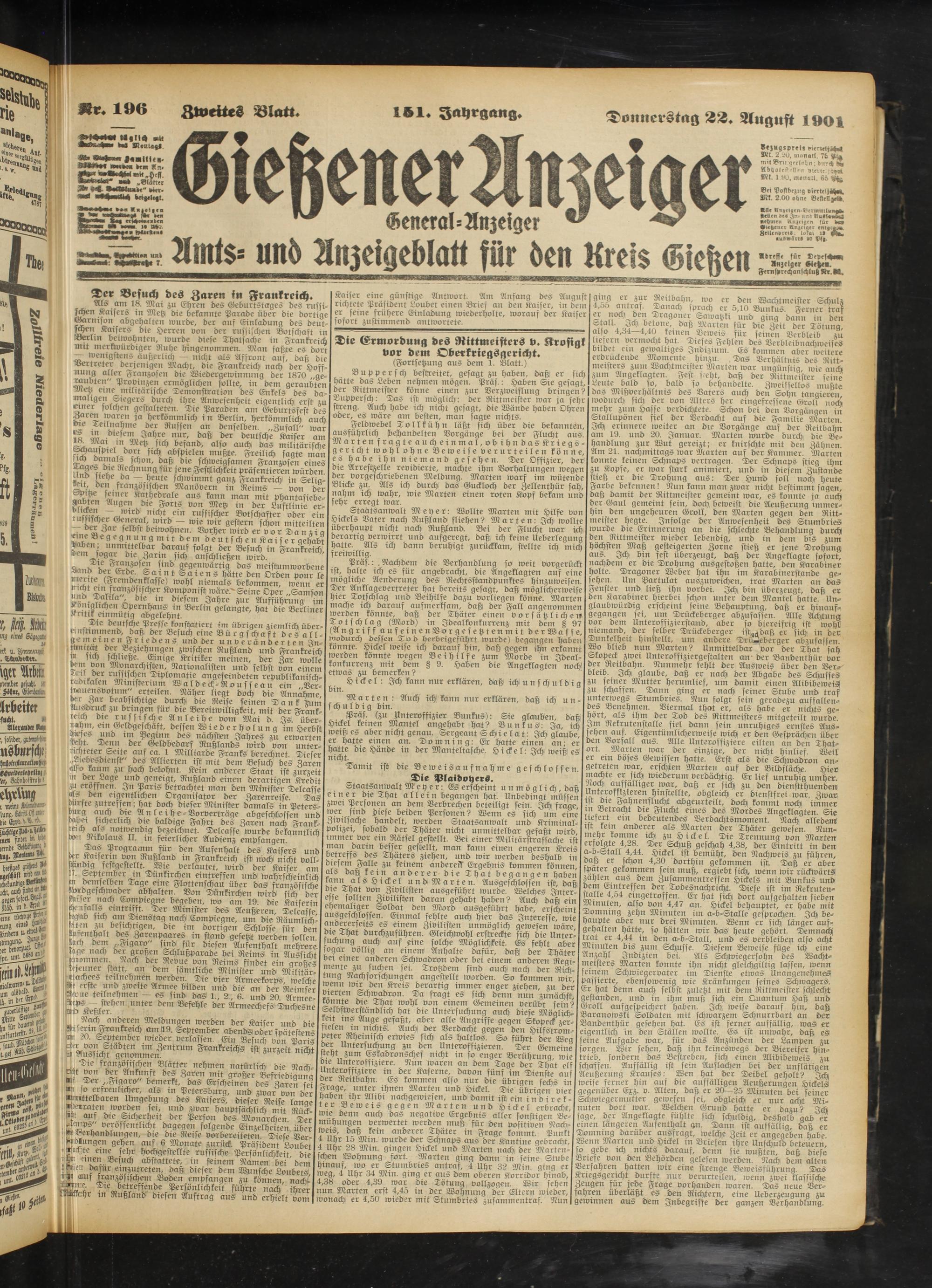 22.8.1901 Zweites Blatt