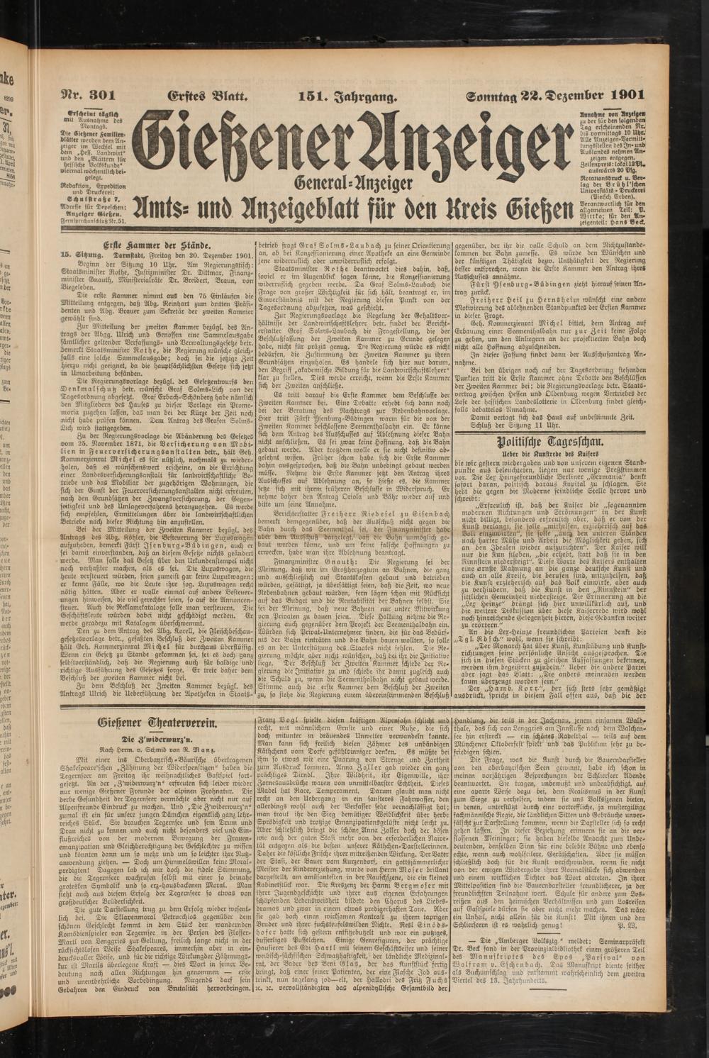 Gießener Anzeiger. 1868-1943