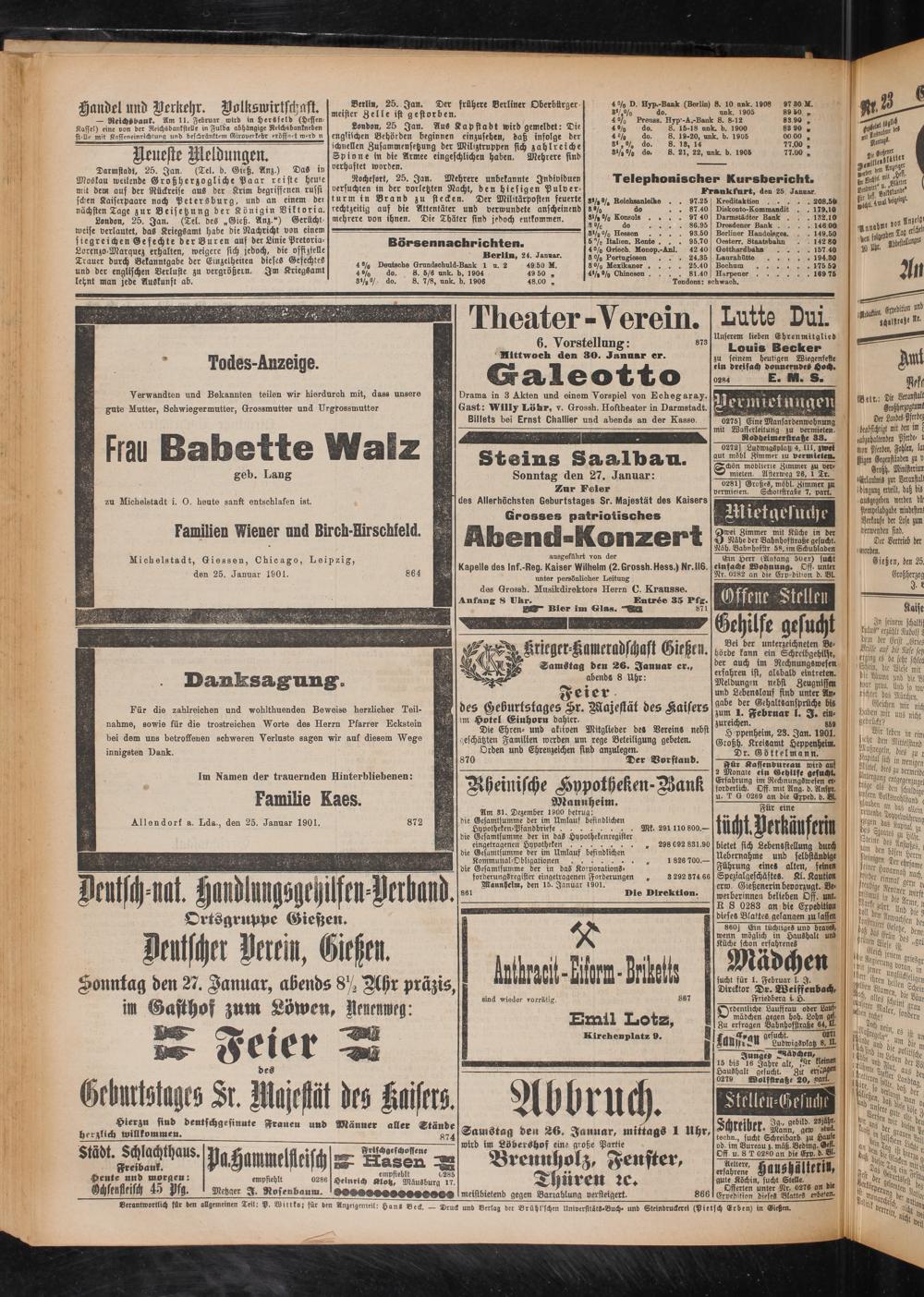 26.1.1901 Zweites Blatt