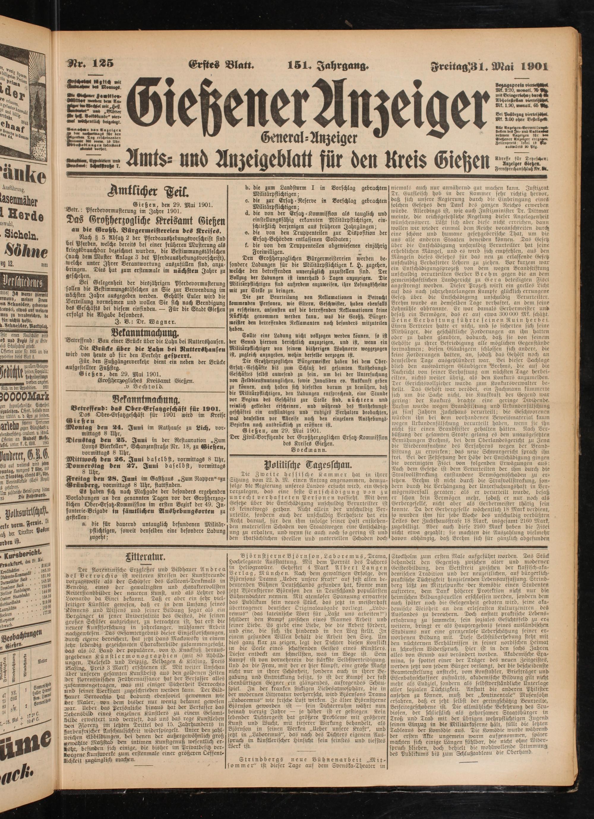 31.5.1901 Erstes Blatt