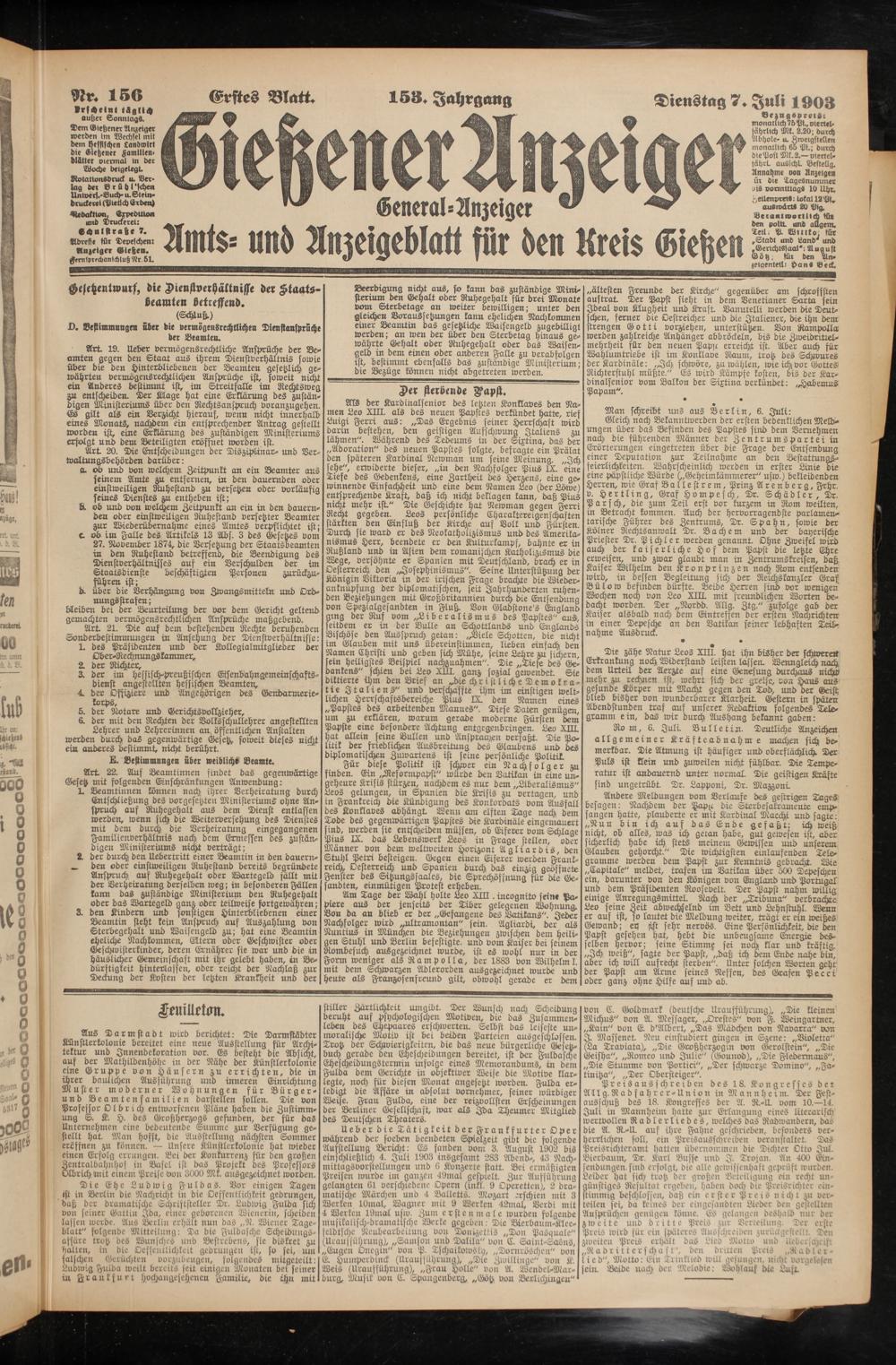 7.7.1903 Erstes Blatt