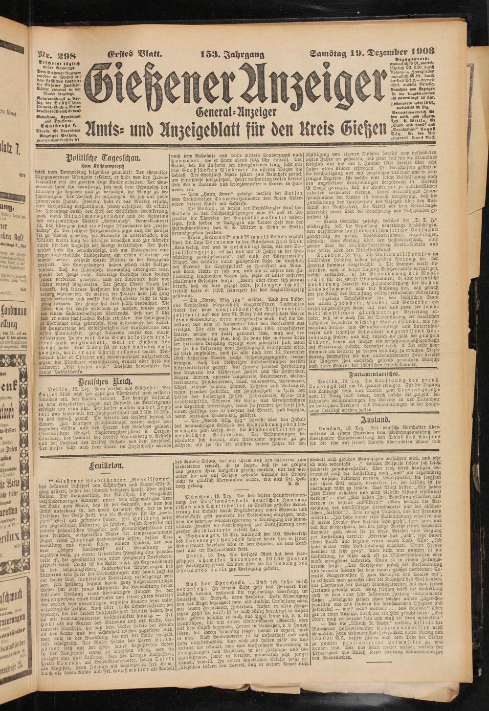 19.12.1903 Erstes Blatt