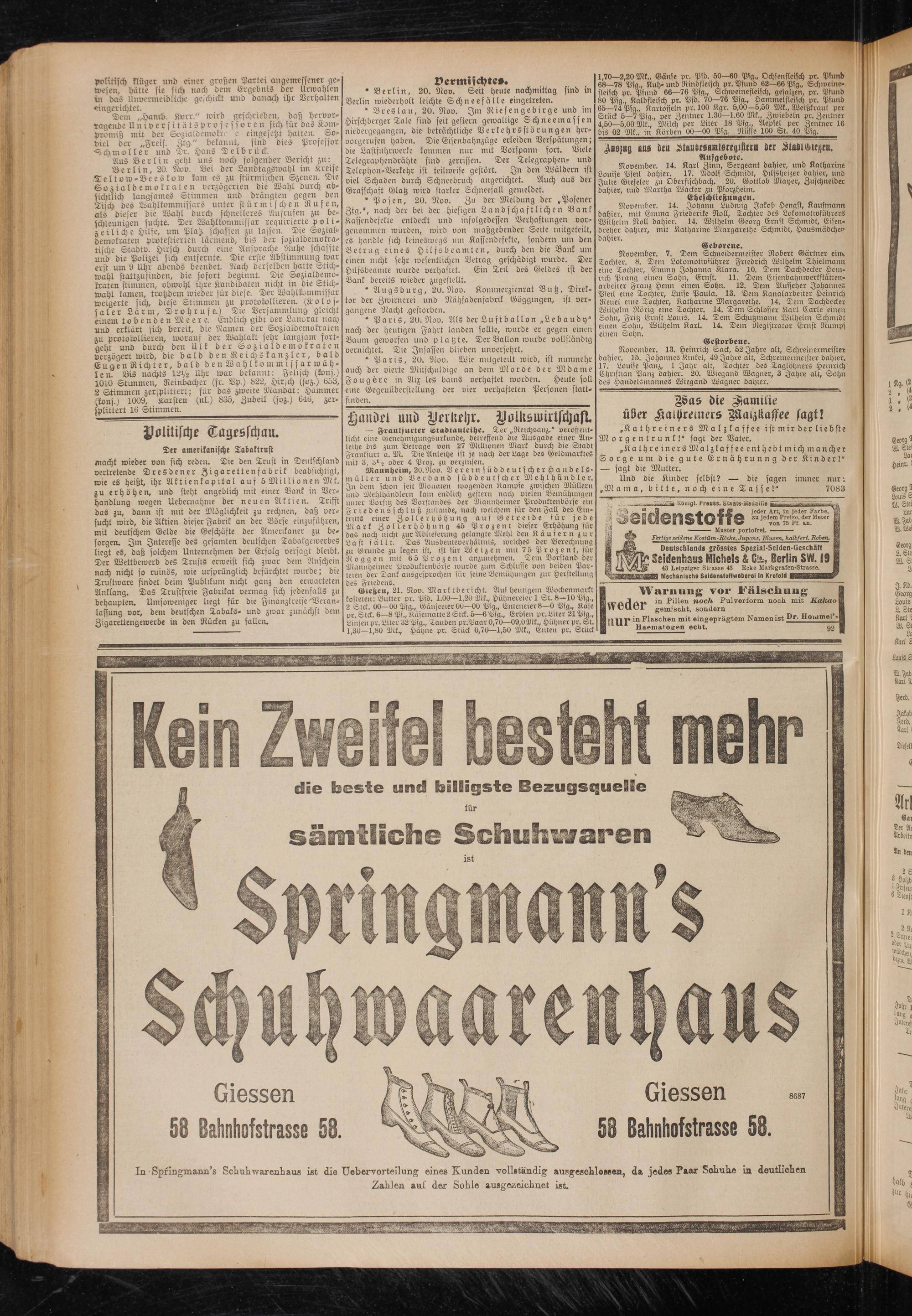21.11.1903 Erstes Blatt