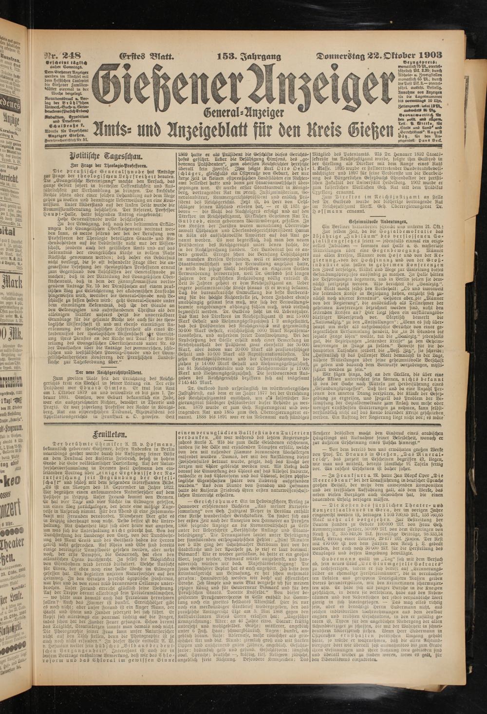 22.10.1903 Erstes Blatt