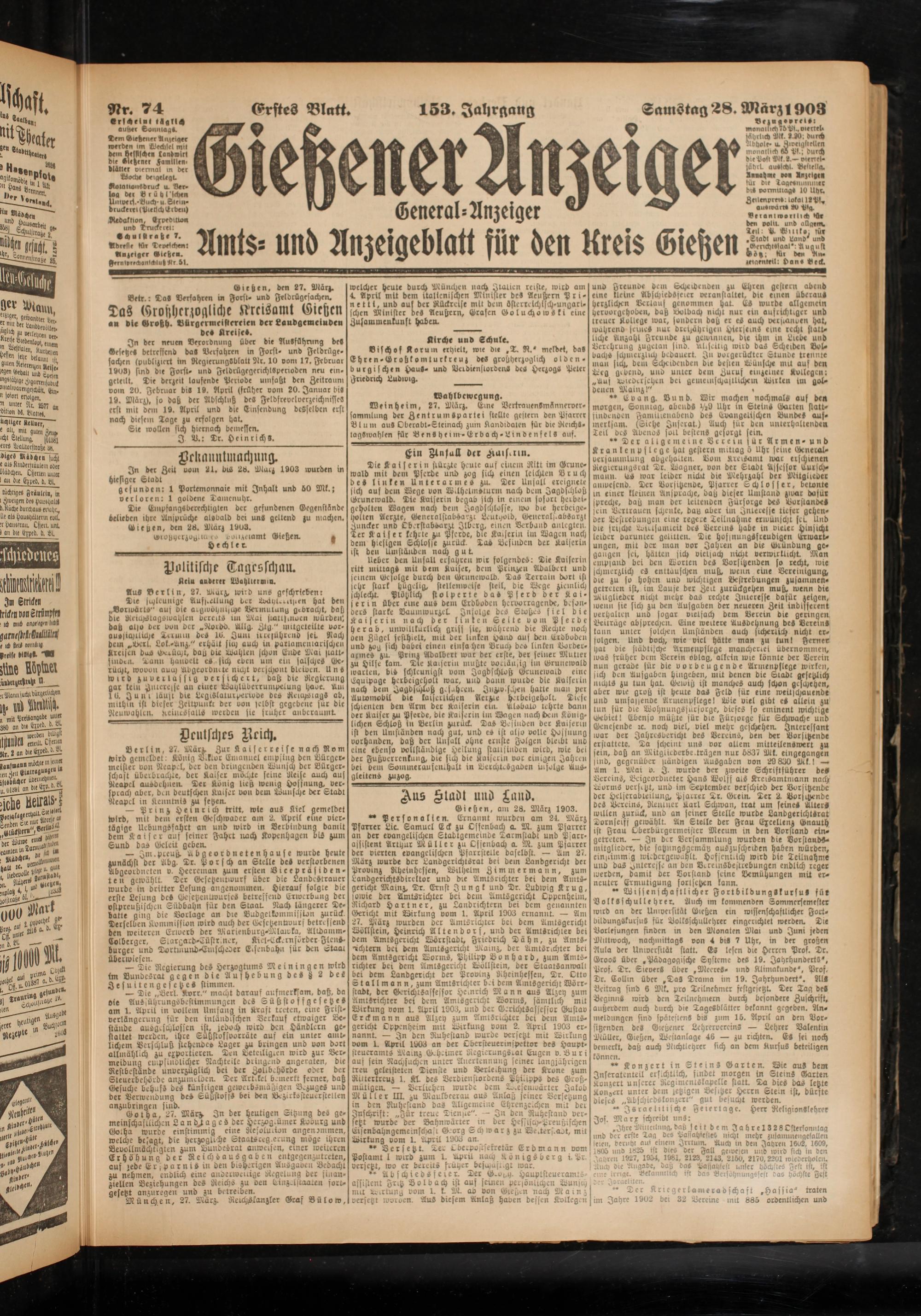 28.3.1903 Erstes Blatt