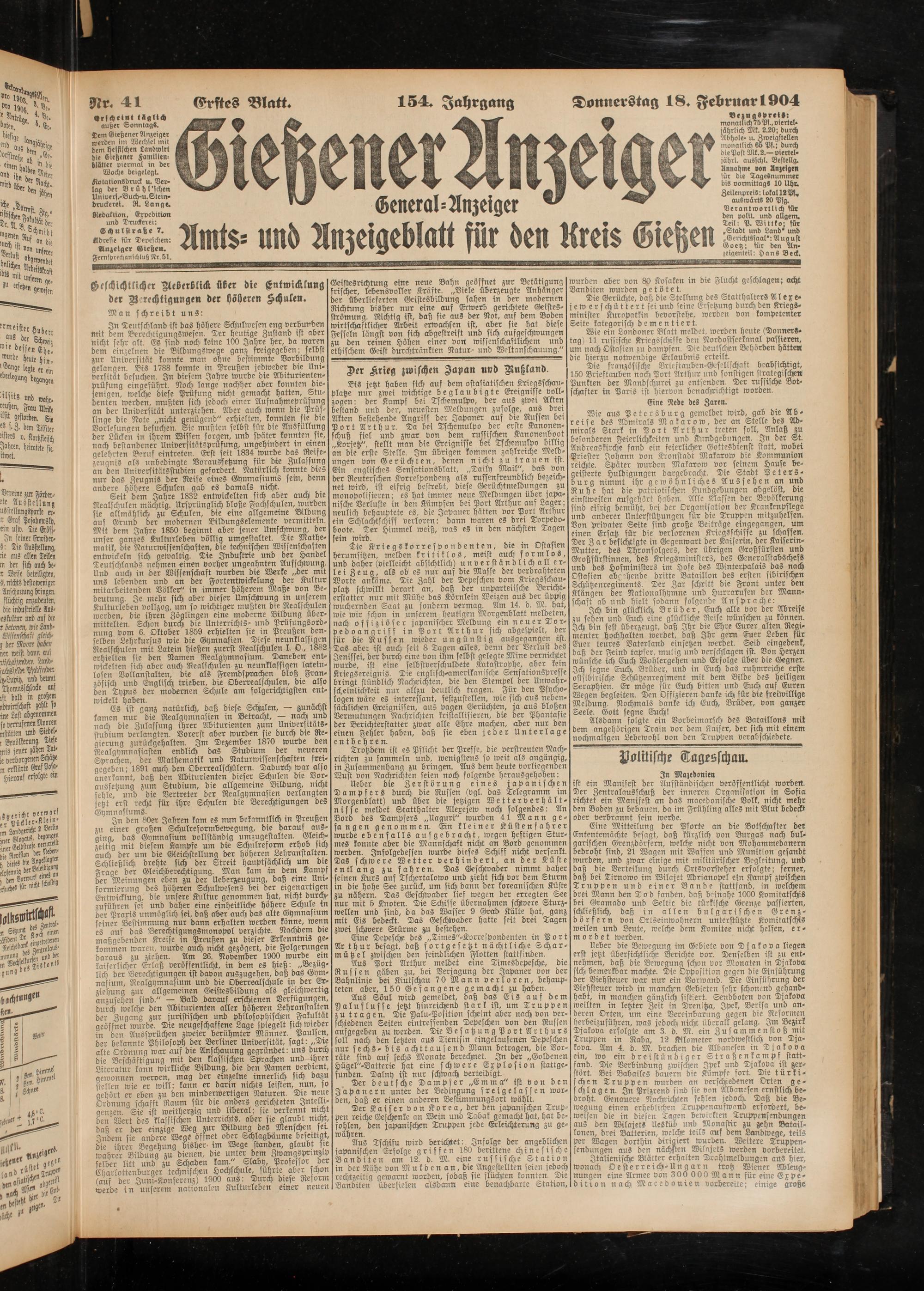 18.2.1904 Erstes Blatt