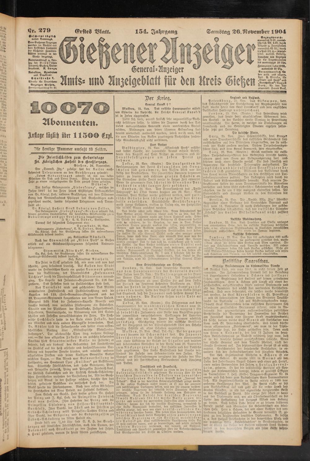 26.11.1904 Erstes Blatt