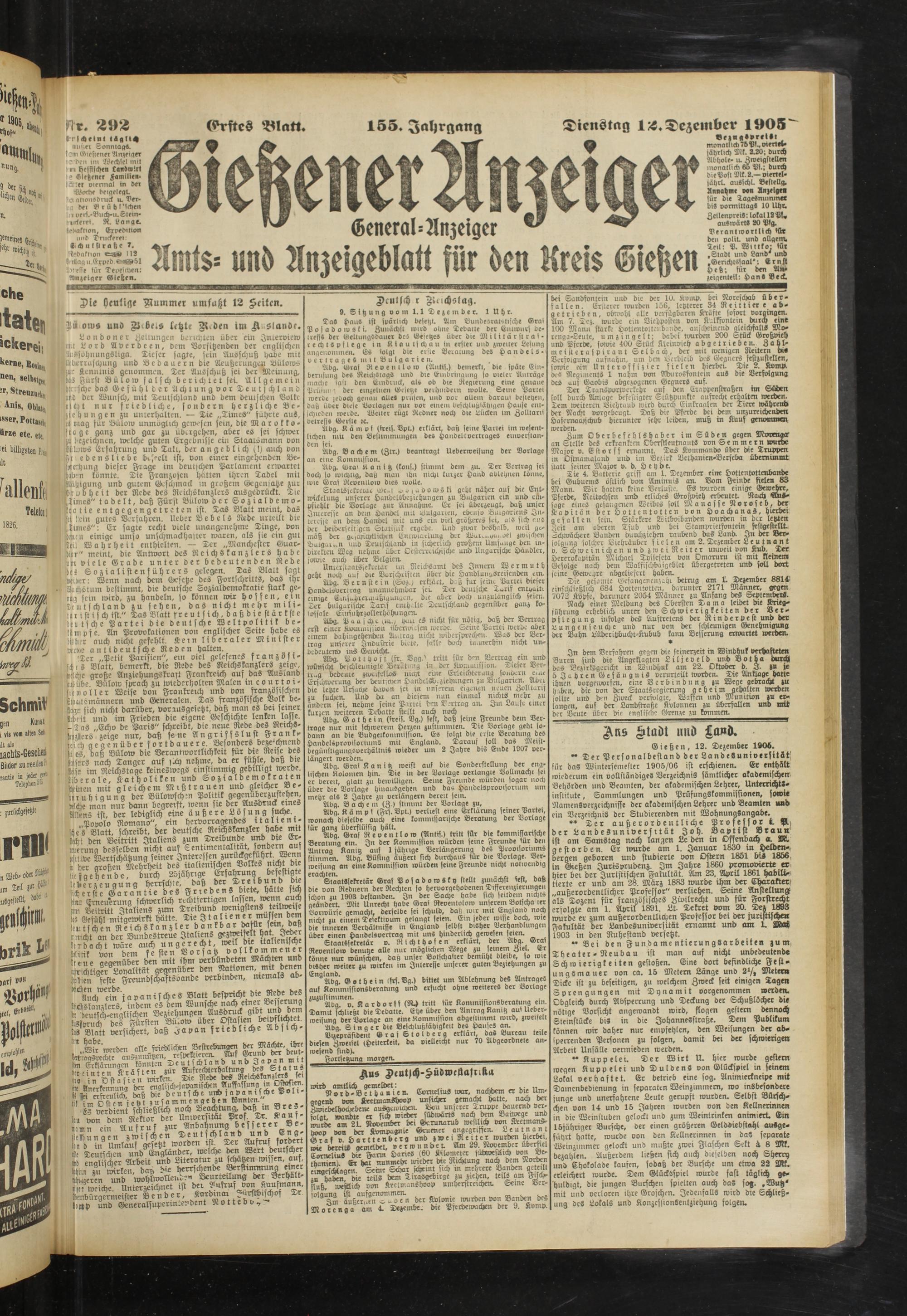12.12.1905 Erstes Blatt