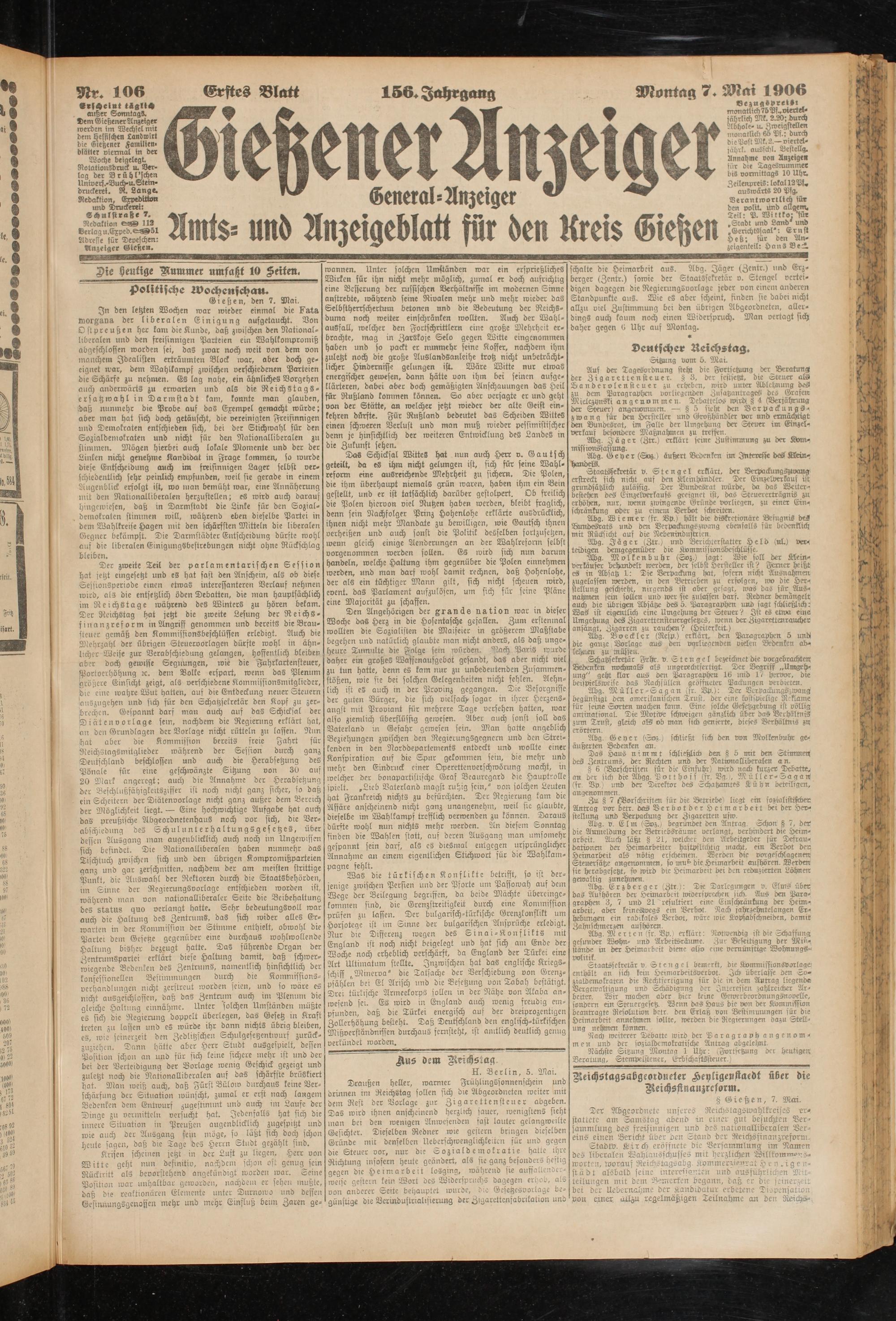 7.5.1906 Erstes Blatt