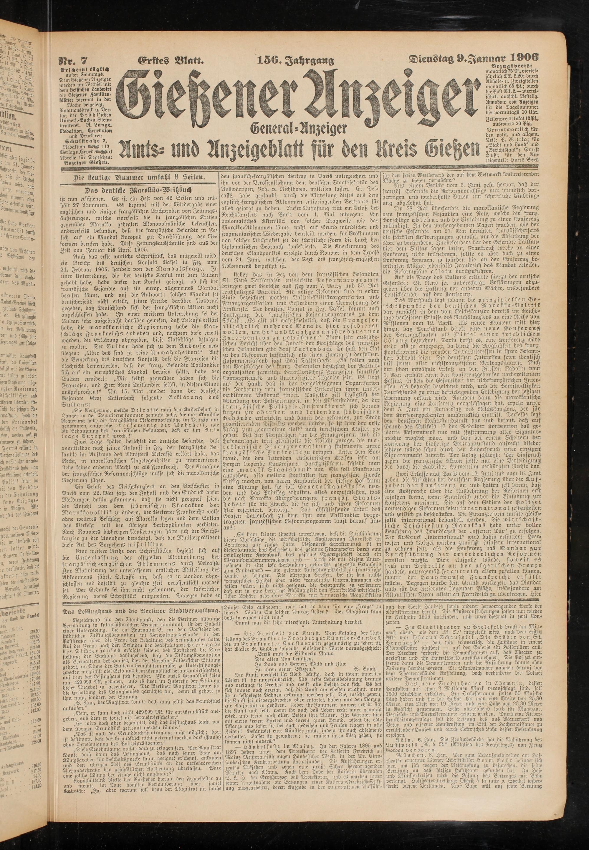 9.1.1906 Erstes Blatt