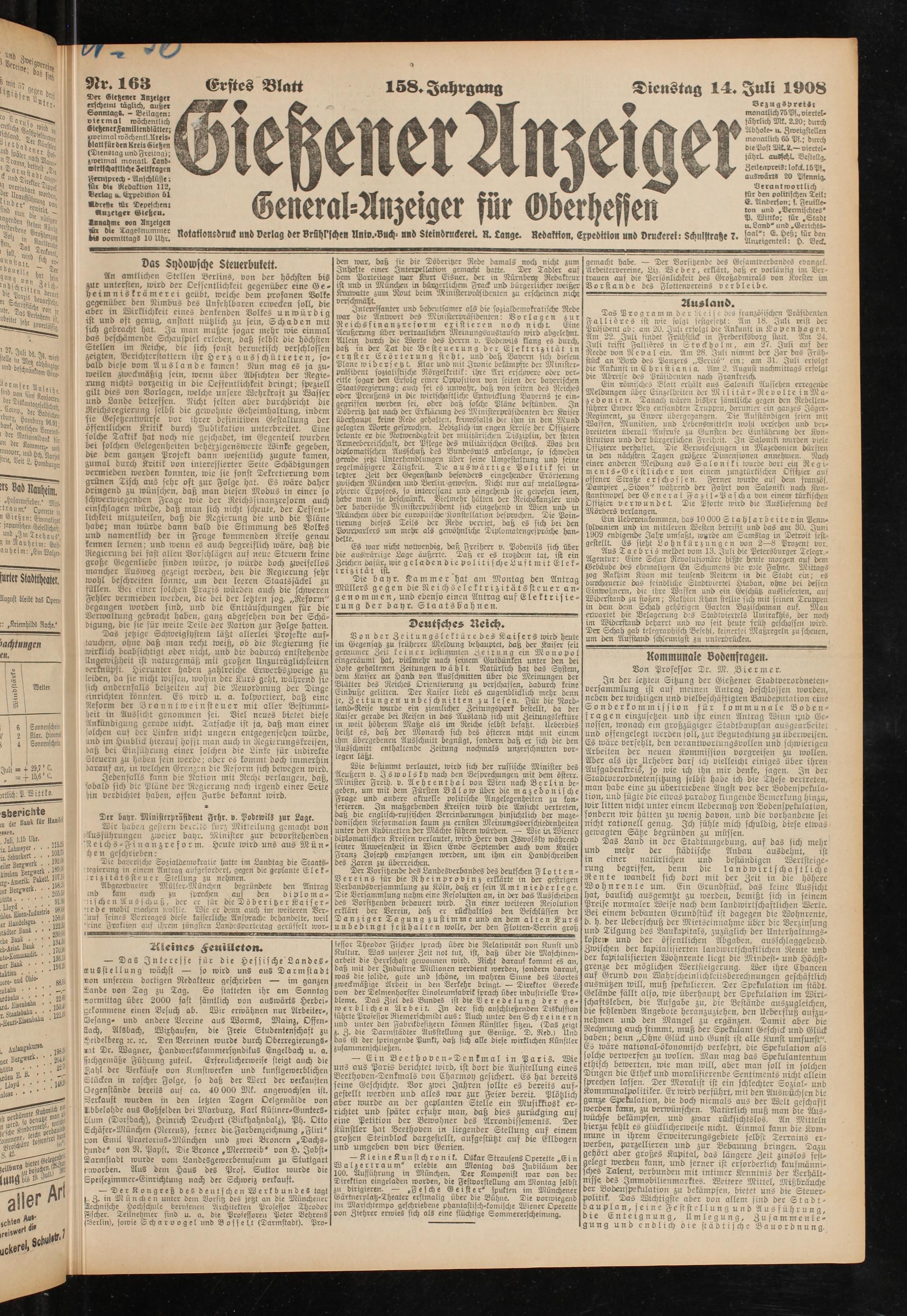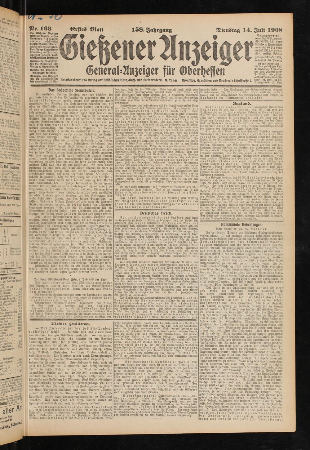 14.7.1908 Erstes Blatt