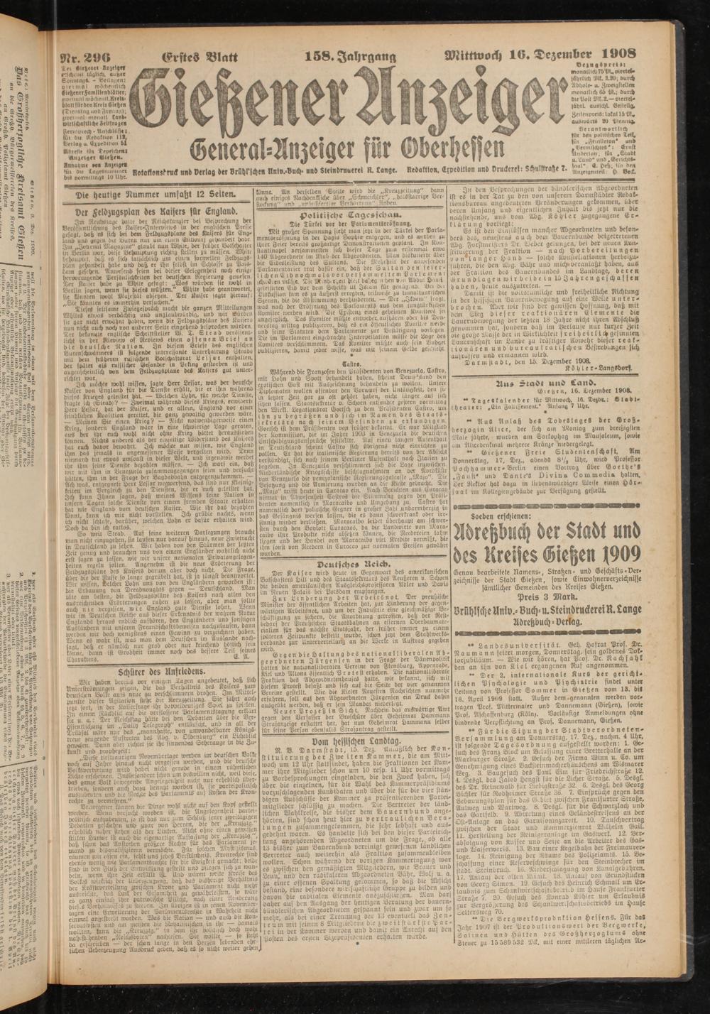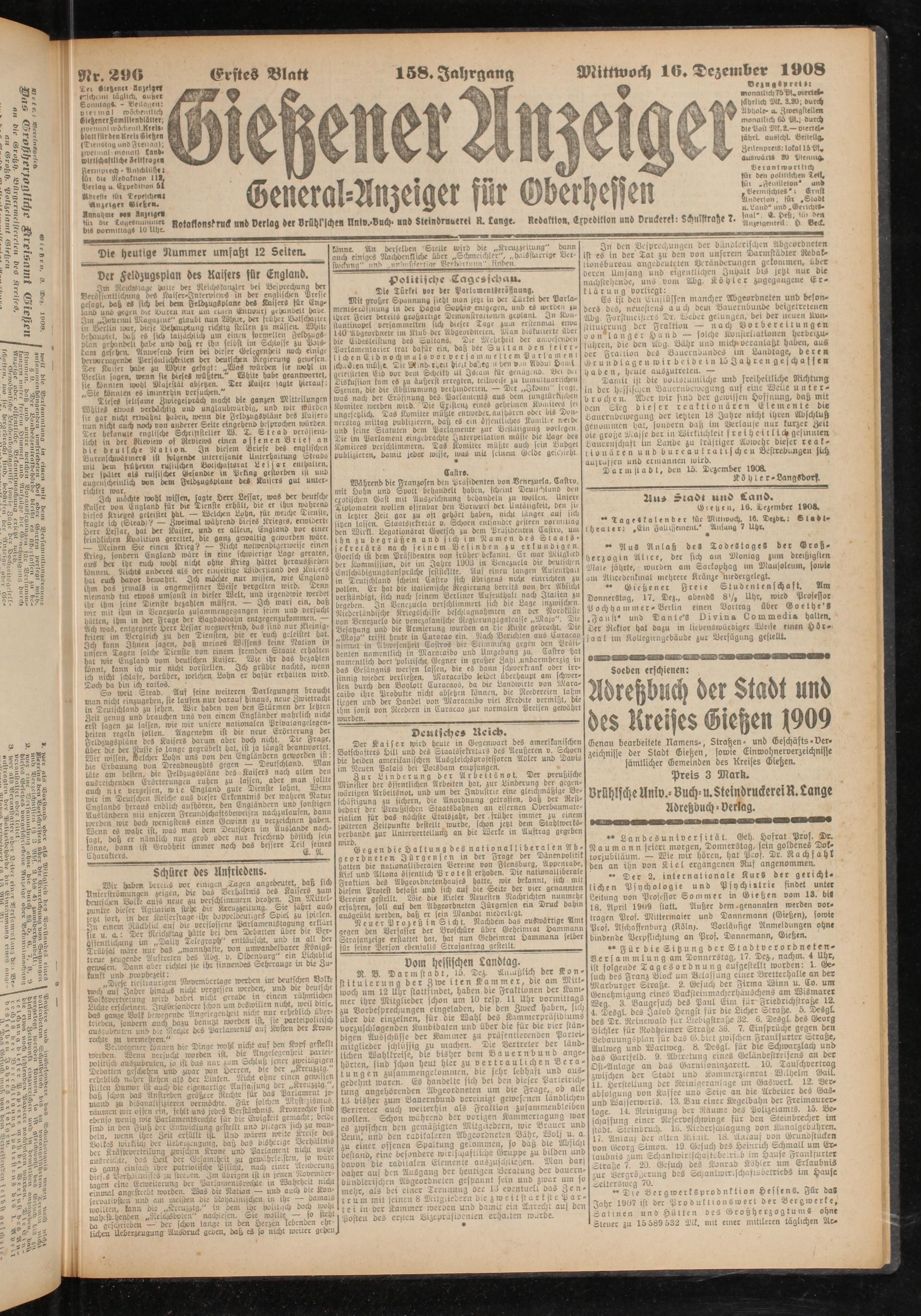 16.12.1908 Erstes Blatt