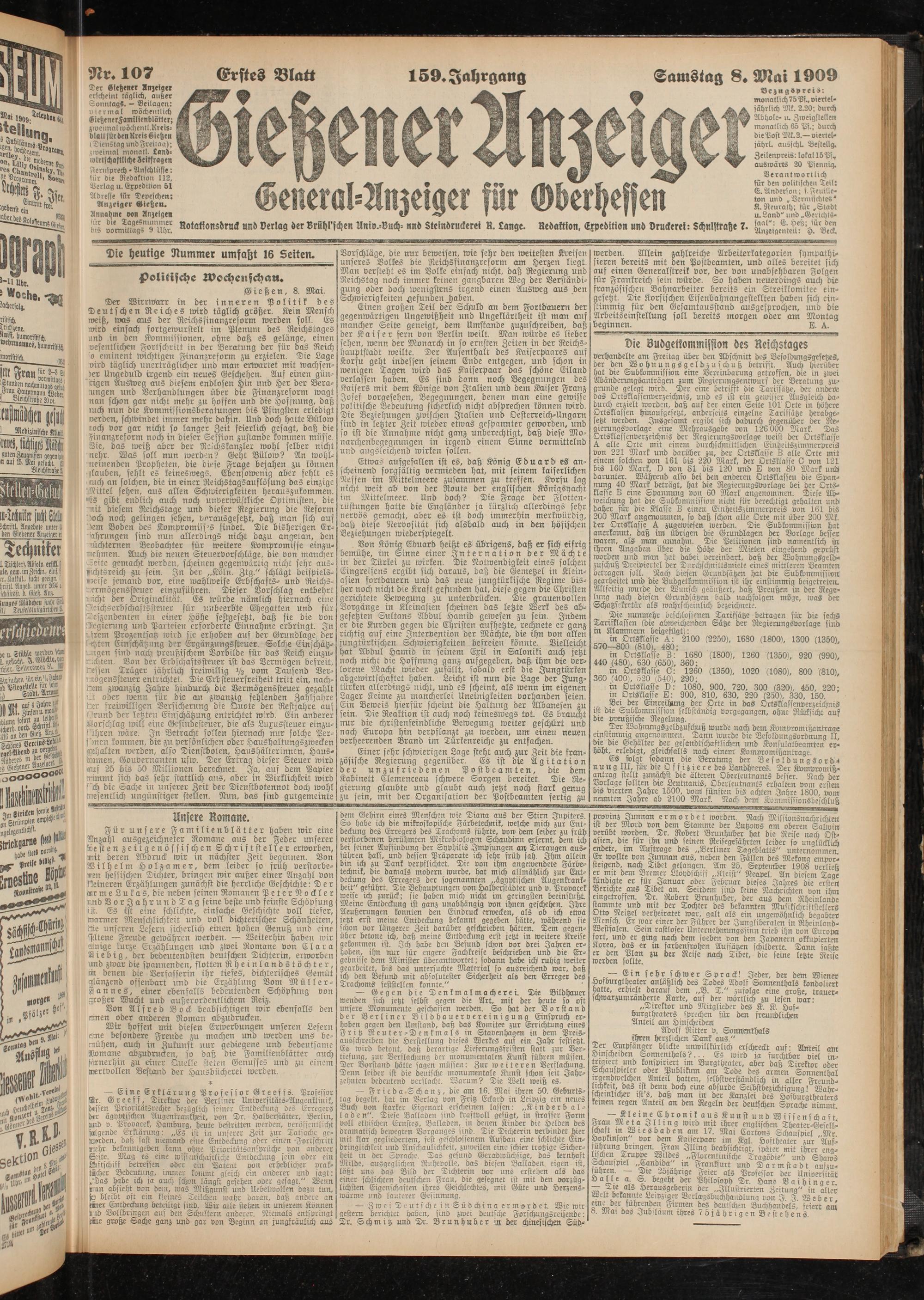 8.5.1909 Erstes Blatt