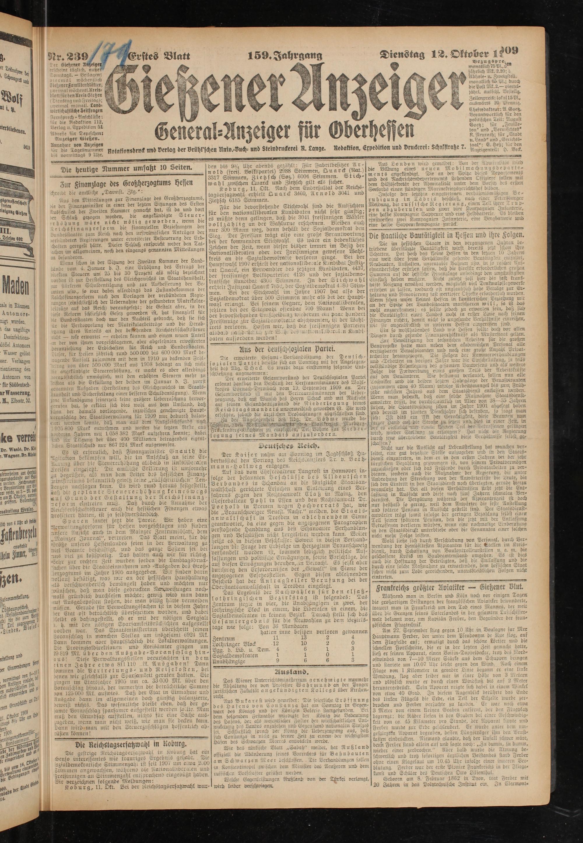 12.10.1909 Erstes Blatt