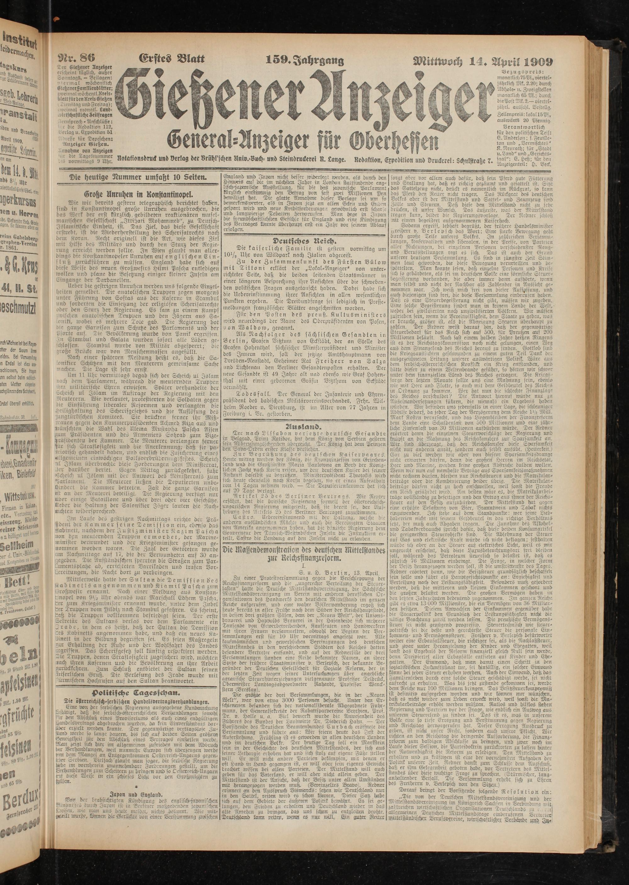 14.4.1909 Erstes Blatt