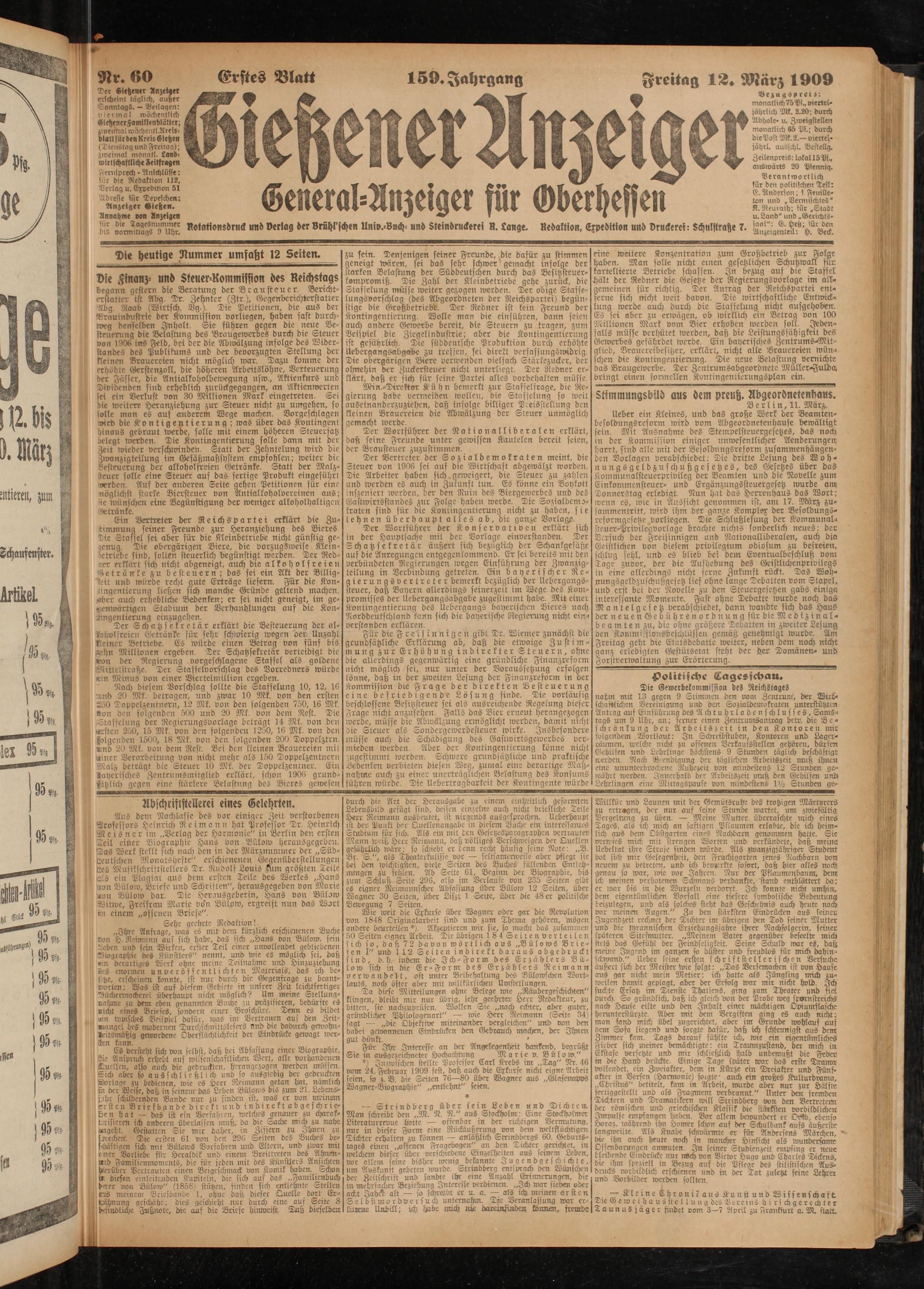 12.3.1909 Erstes Blatt