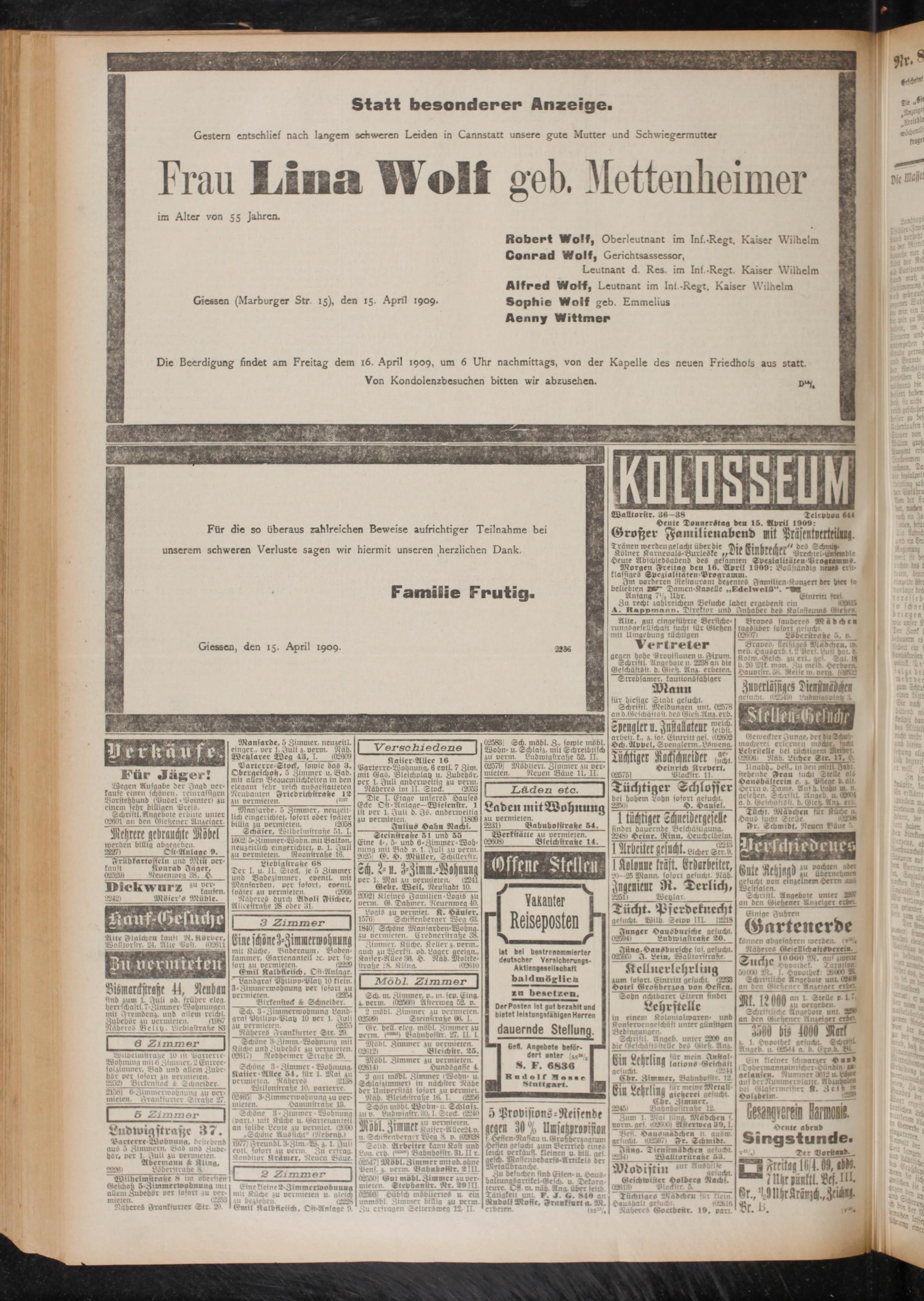 15.4.1909 Erstes Blatt
