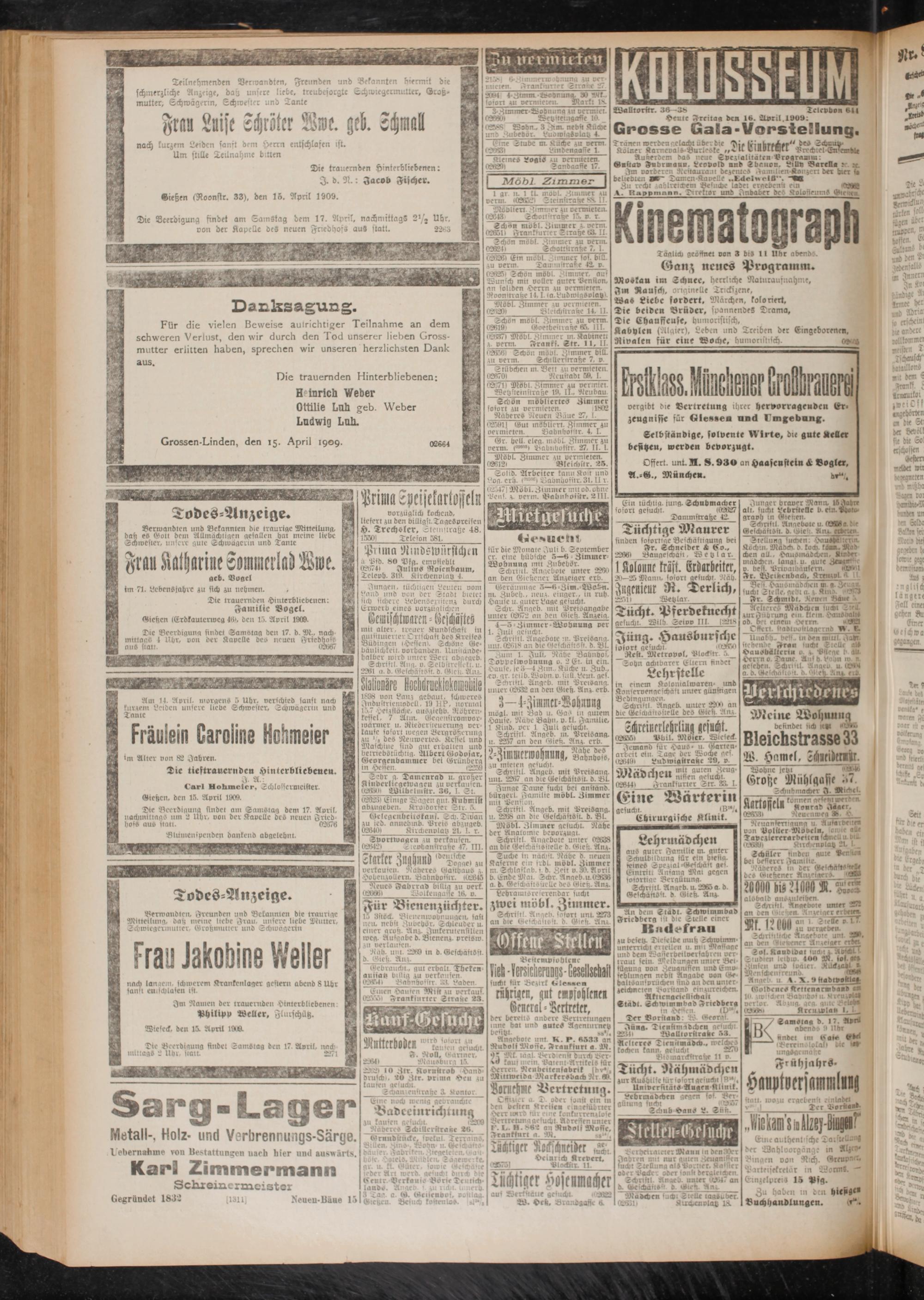 16.4.1909 Erstes Blatt