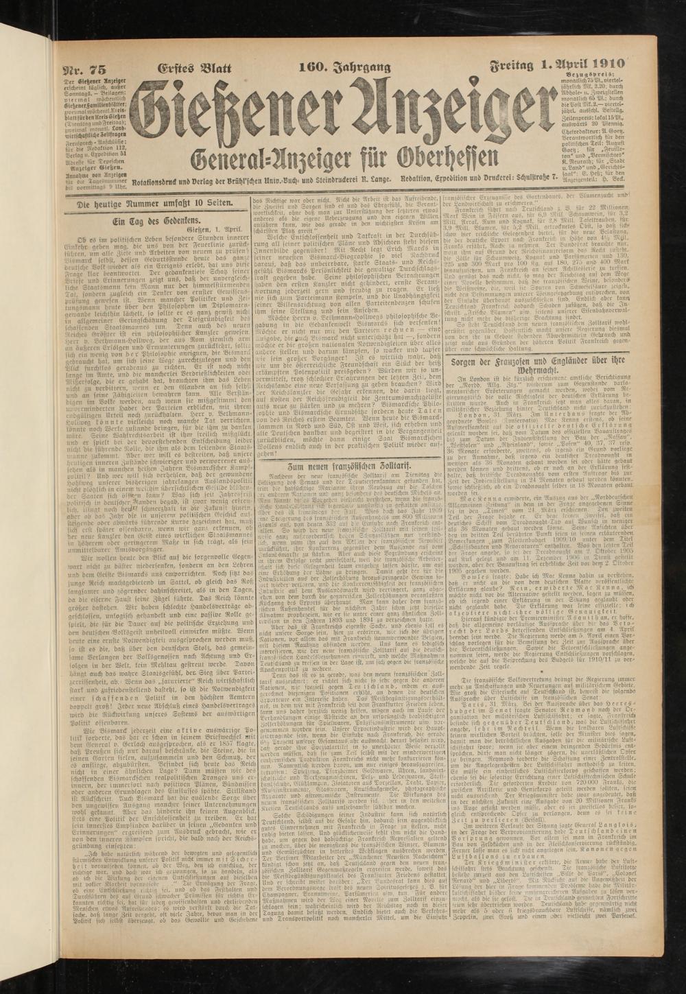 1.4.1910 Erstes Blatt