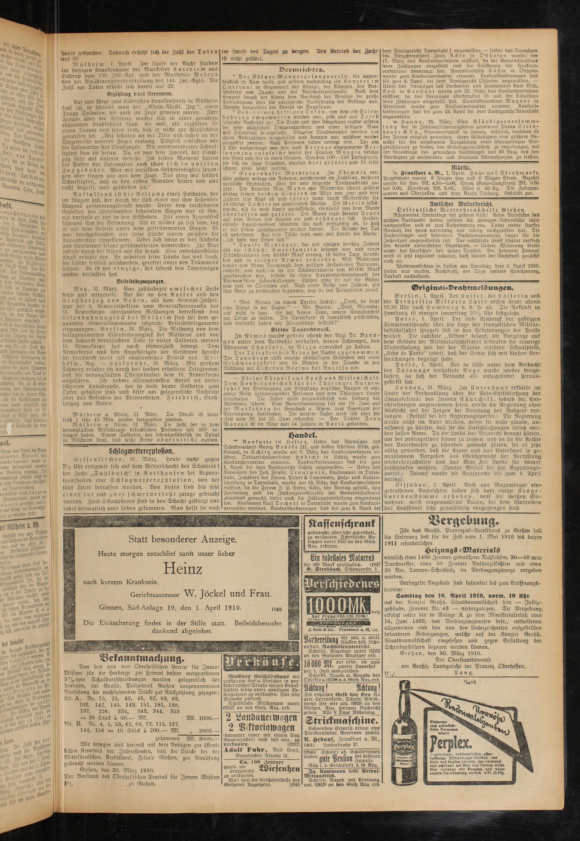 1.4.1910 Erstes Blatt