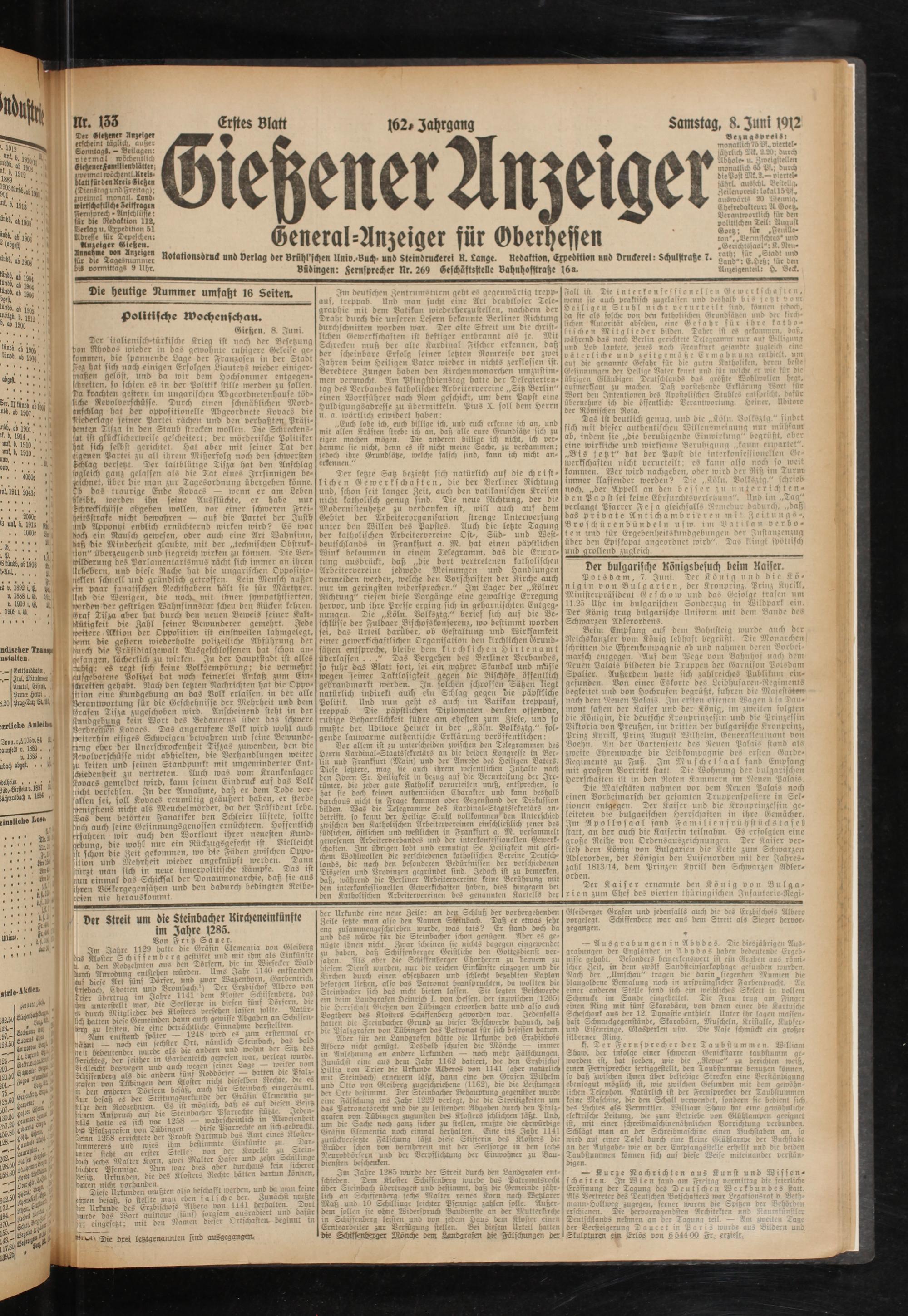 8.6.1912 Erstes Blatt