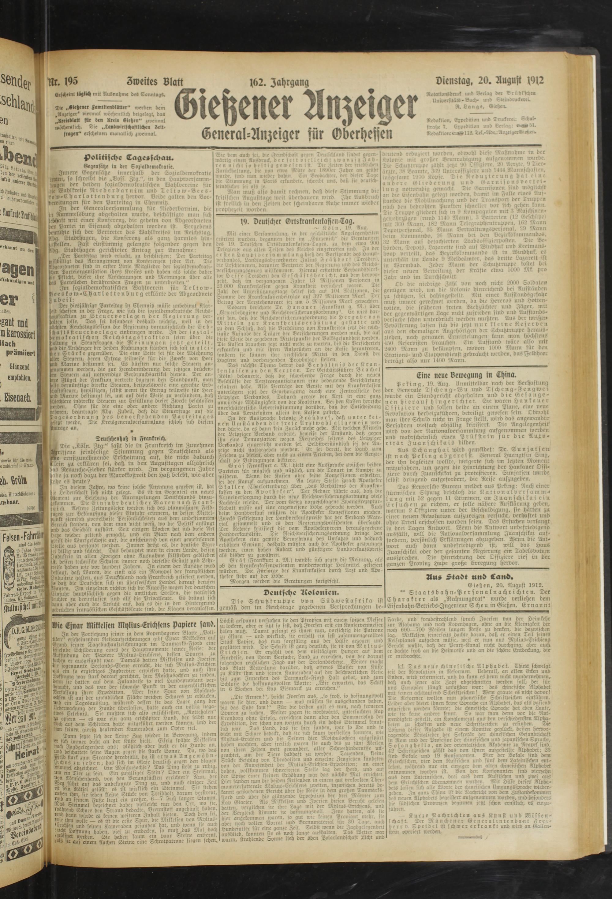 20.8.1912 Zweites Blatt