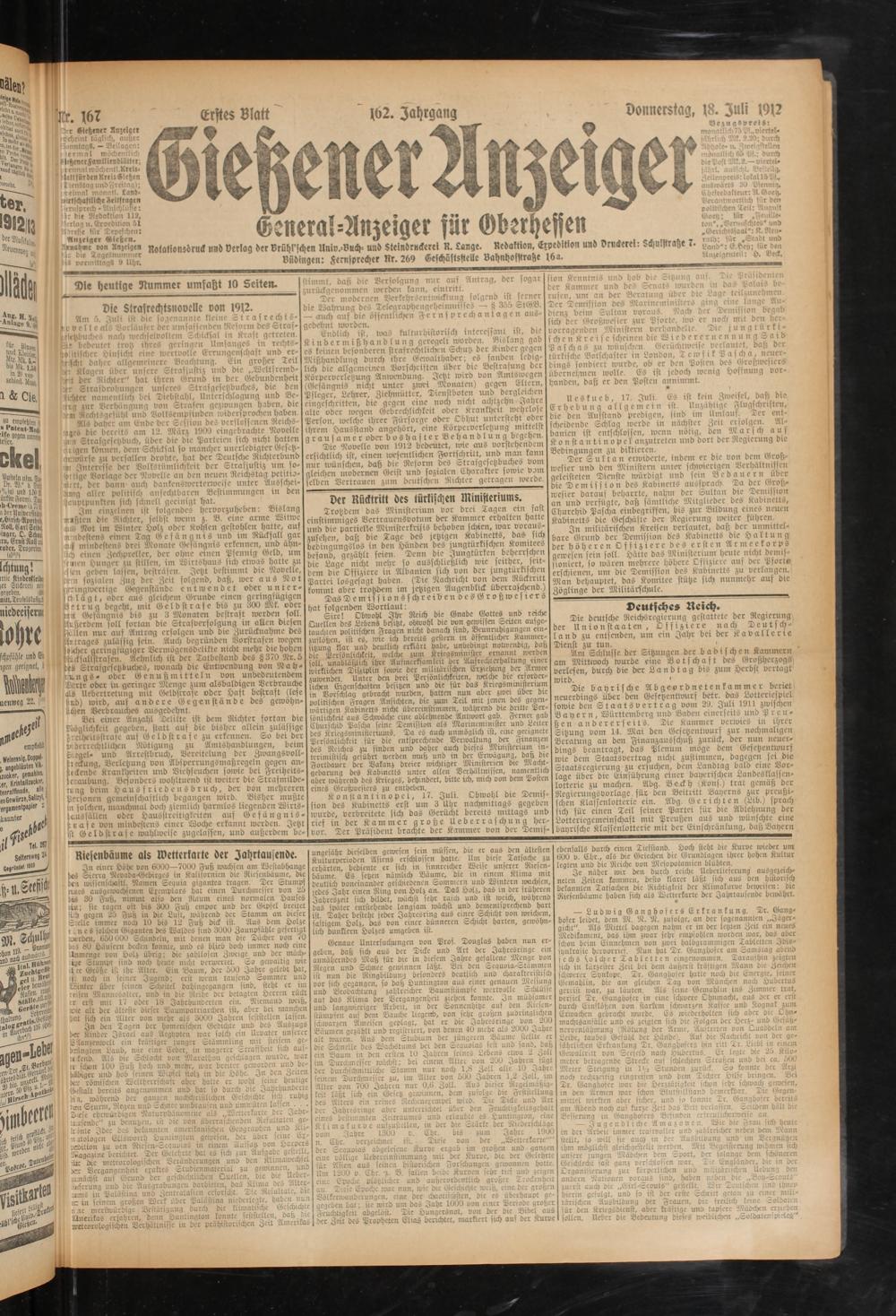18.7.1912 Erstes Blatt