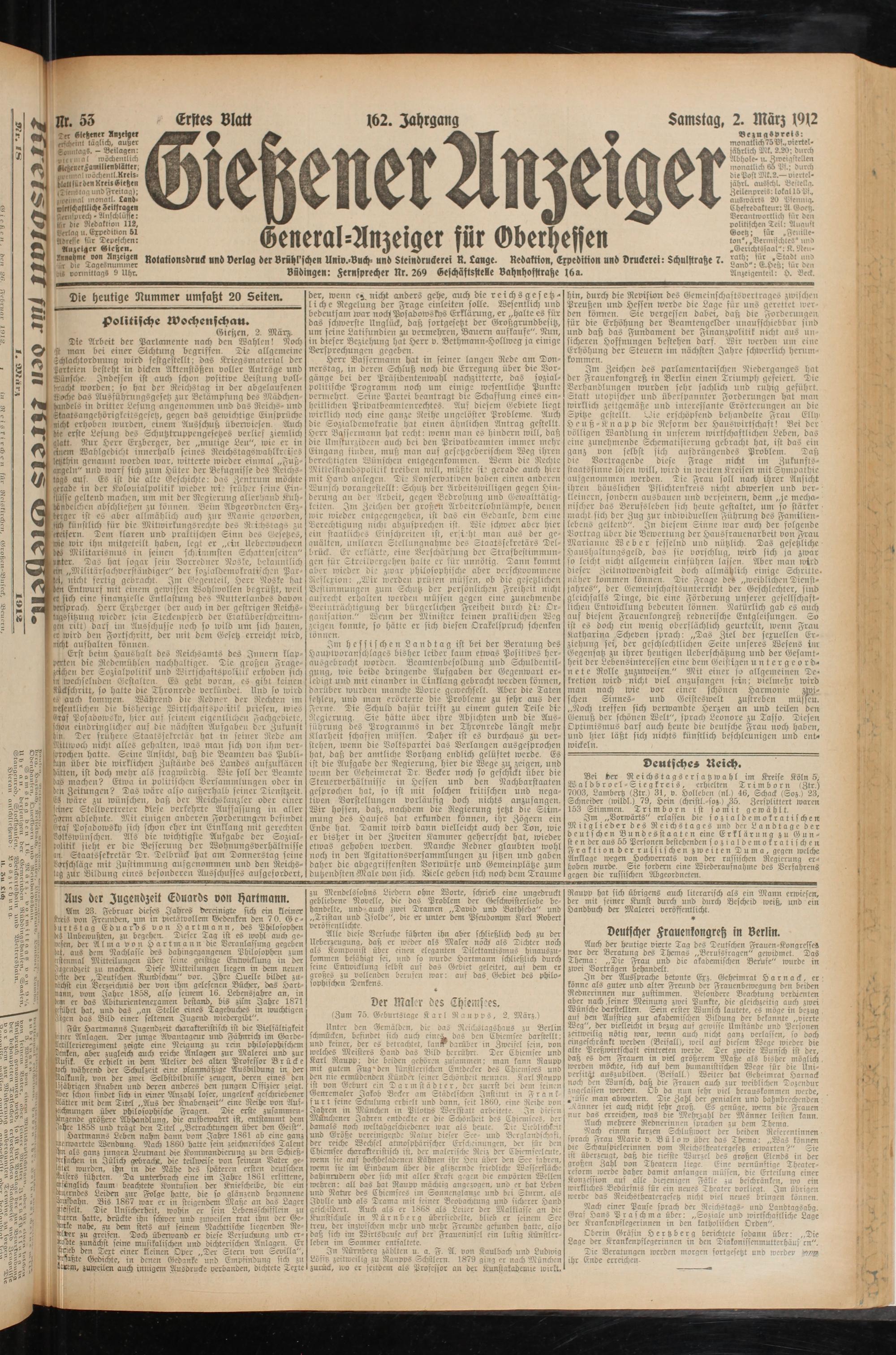 2.3.1912 Erstes Blatt