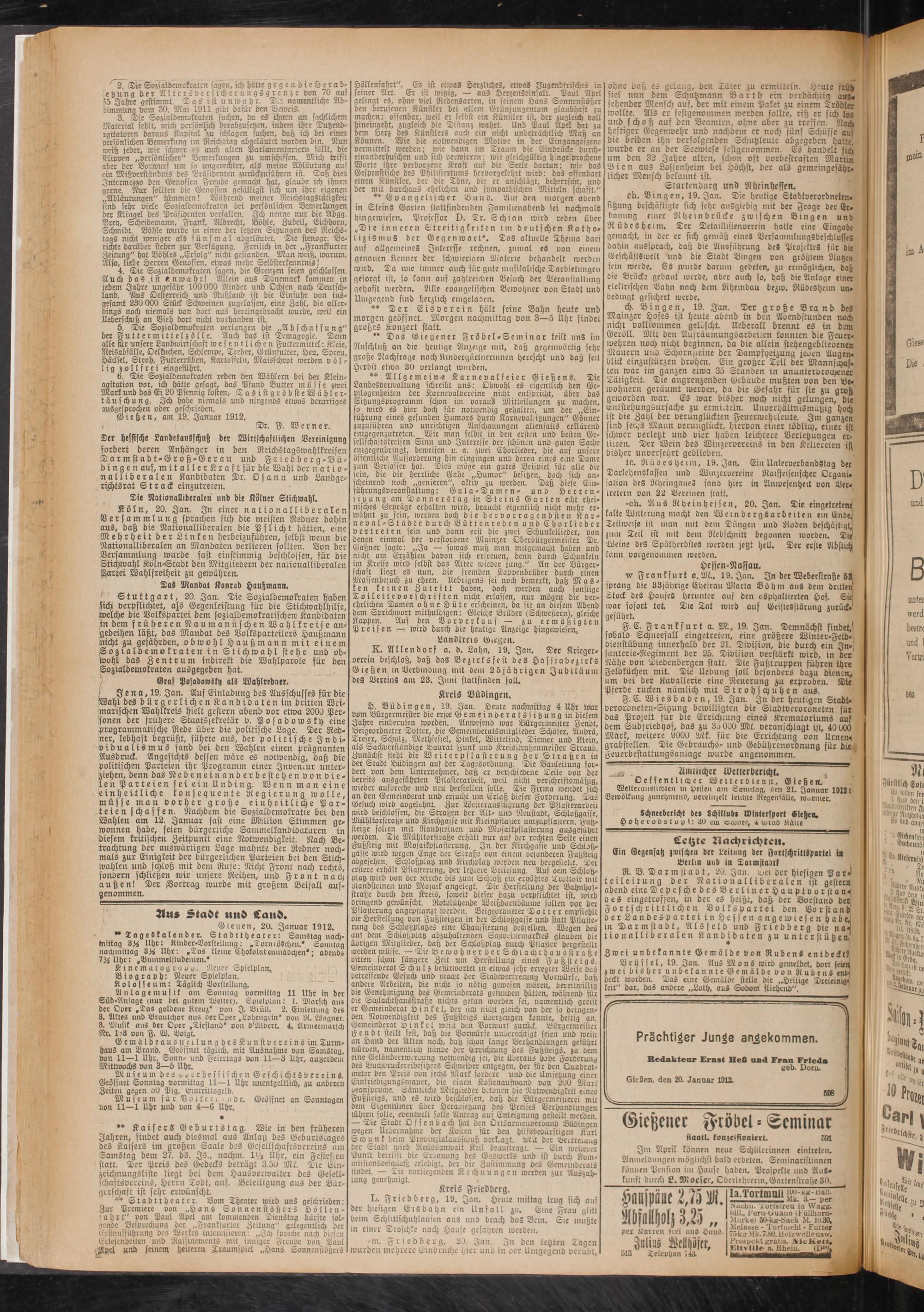20.1.1912 Erstes Blatt