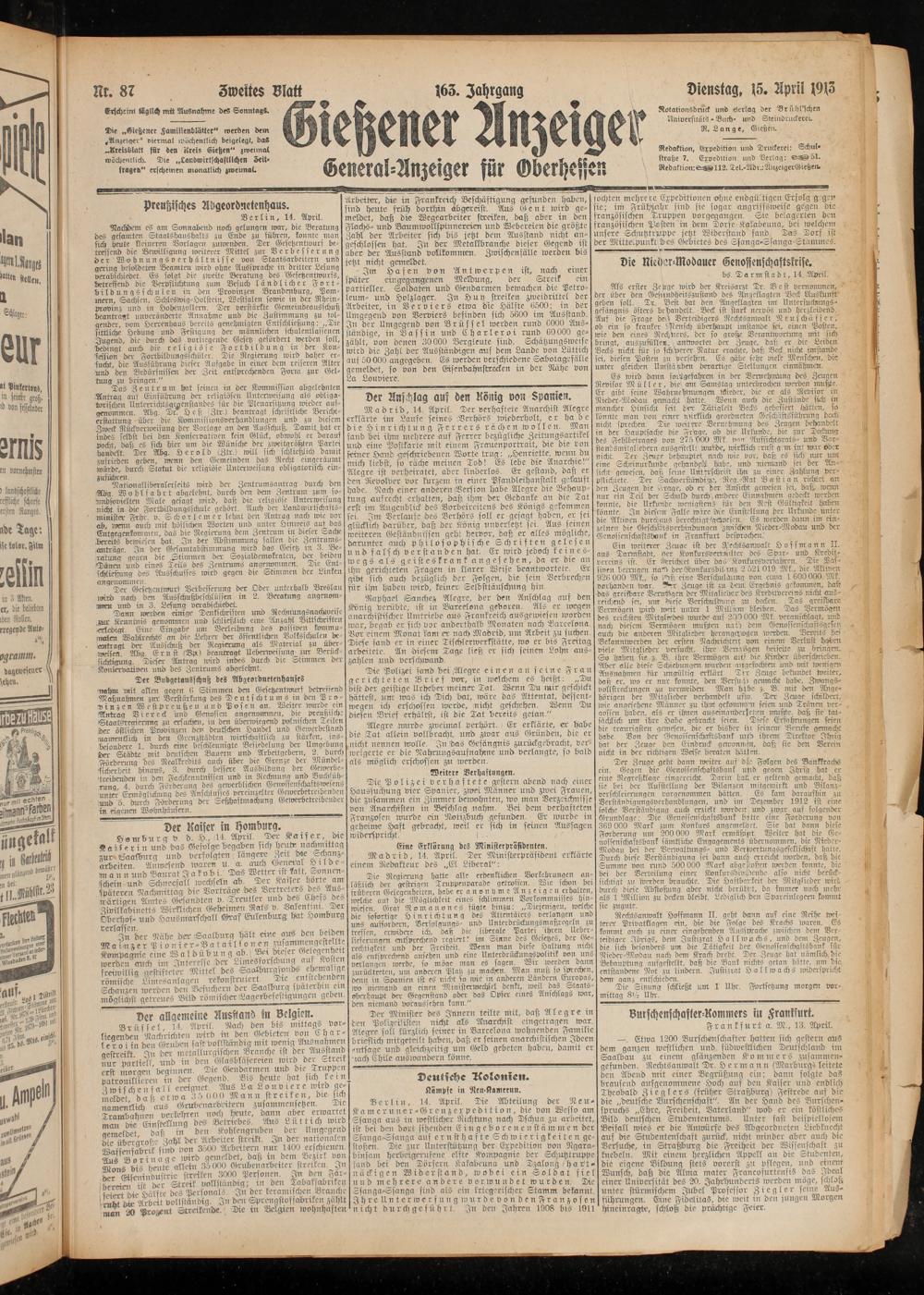 15.4.1913 Zweites Blatt