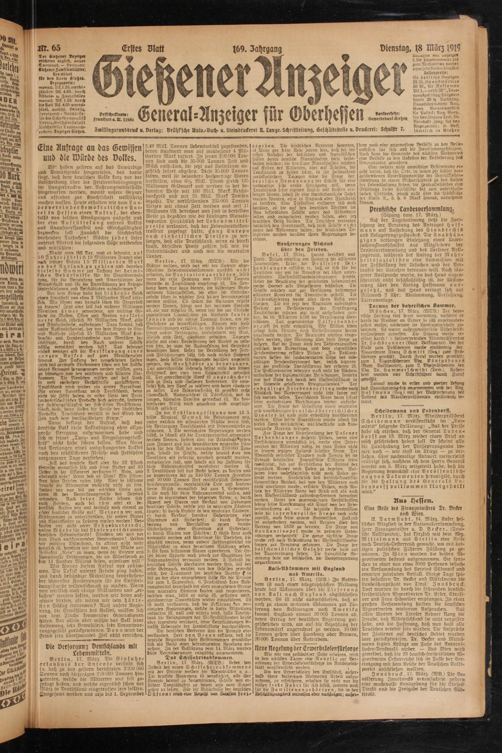 Gießener Anzeiger. 1868-1943