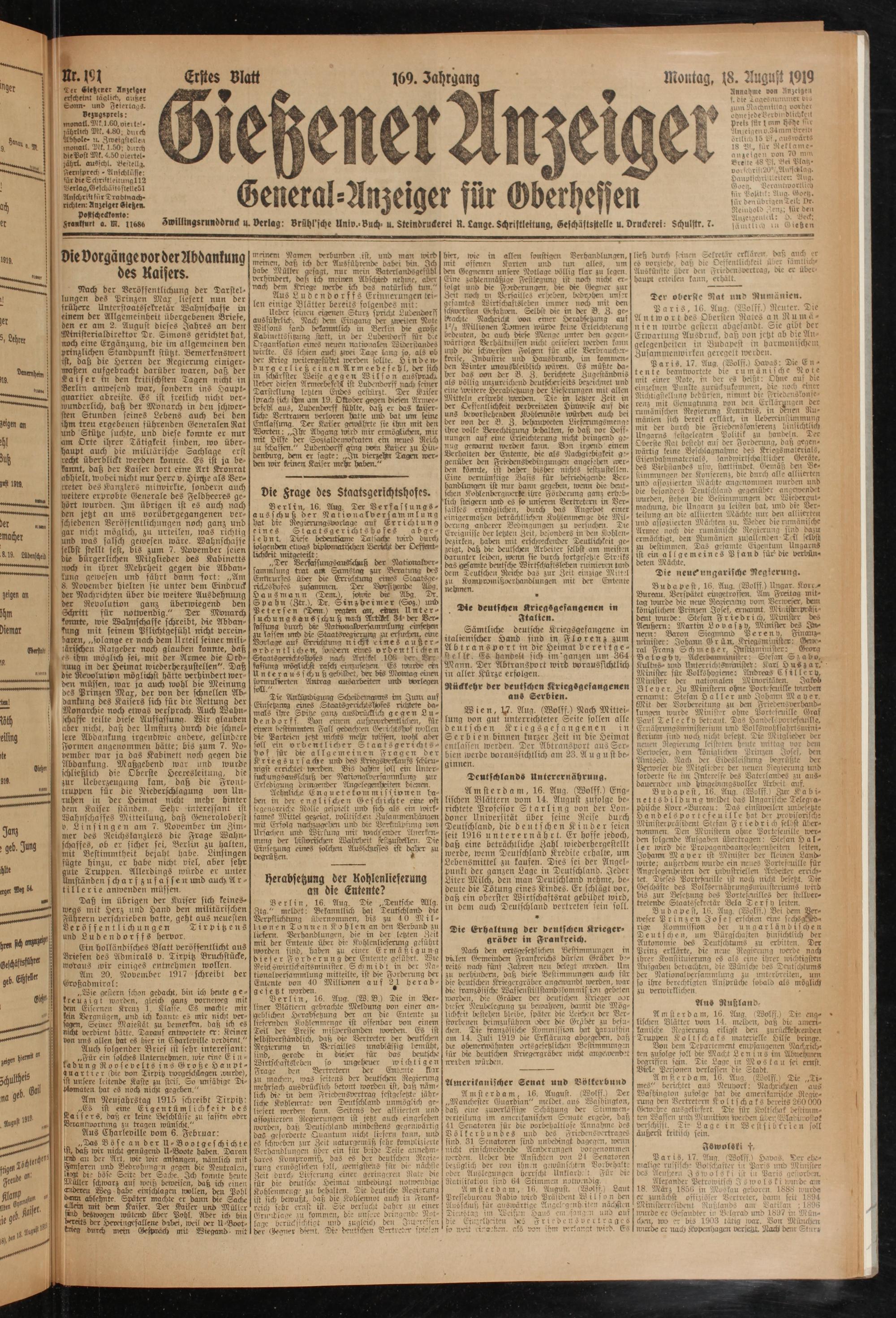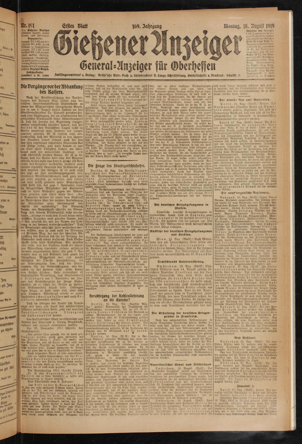 Gießener Anzeiger. 1868-1943