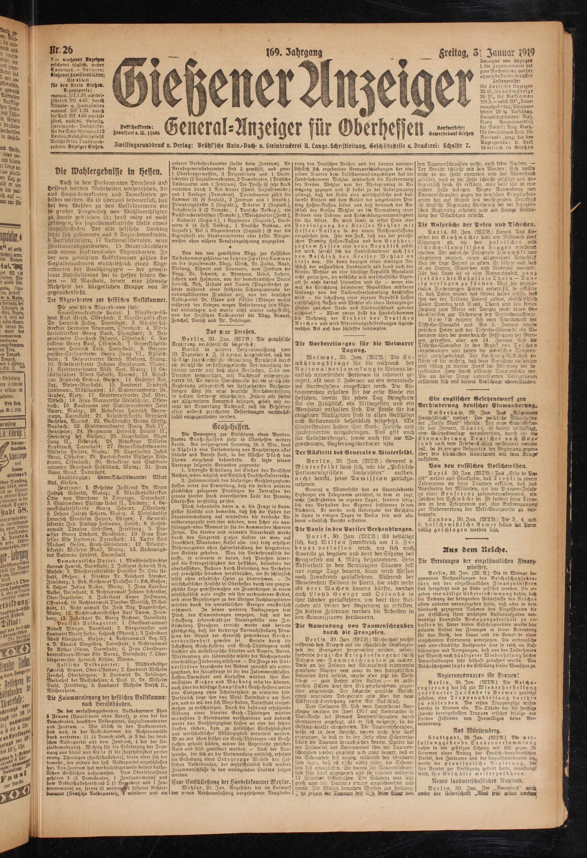 Gießener Anzeiger. 1868-1943