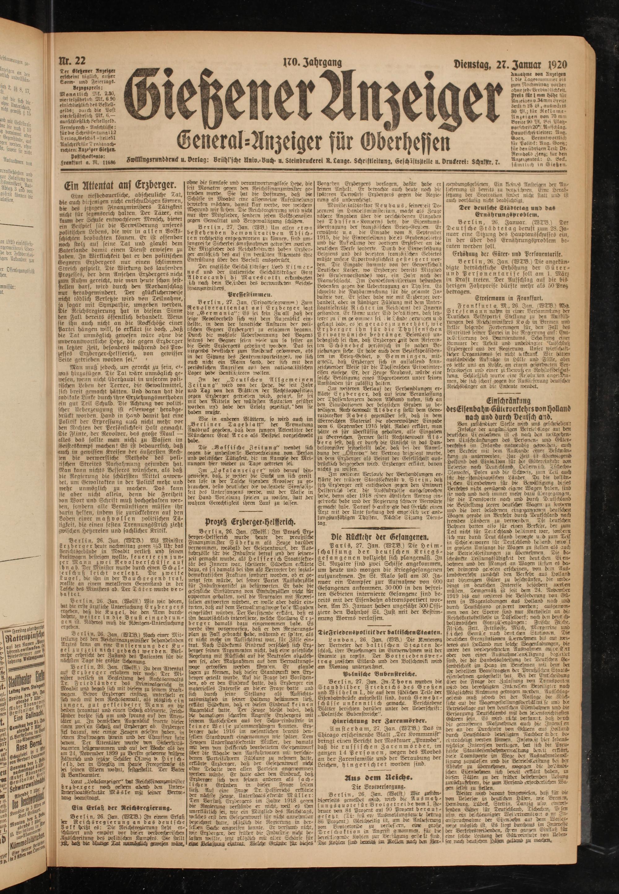 Gießener Anzeiger. 1868-1943