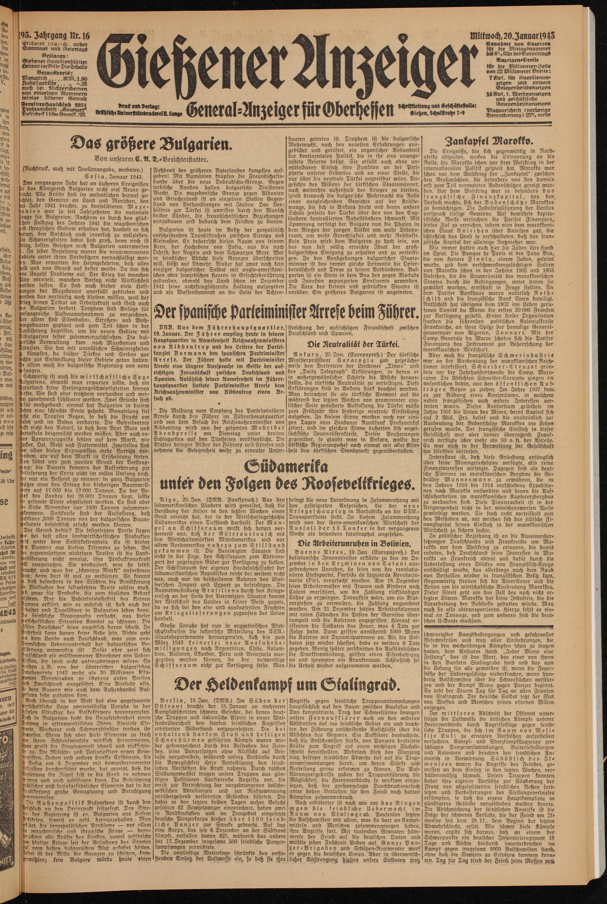 Gießener Anzeiger. 1868-1943