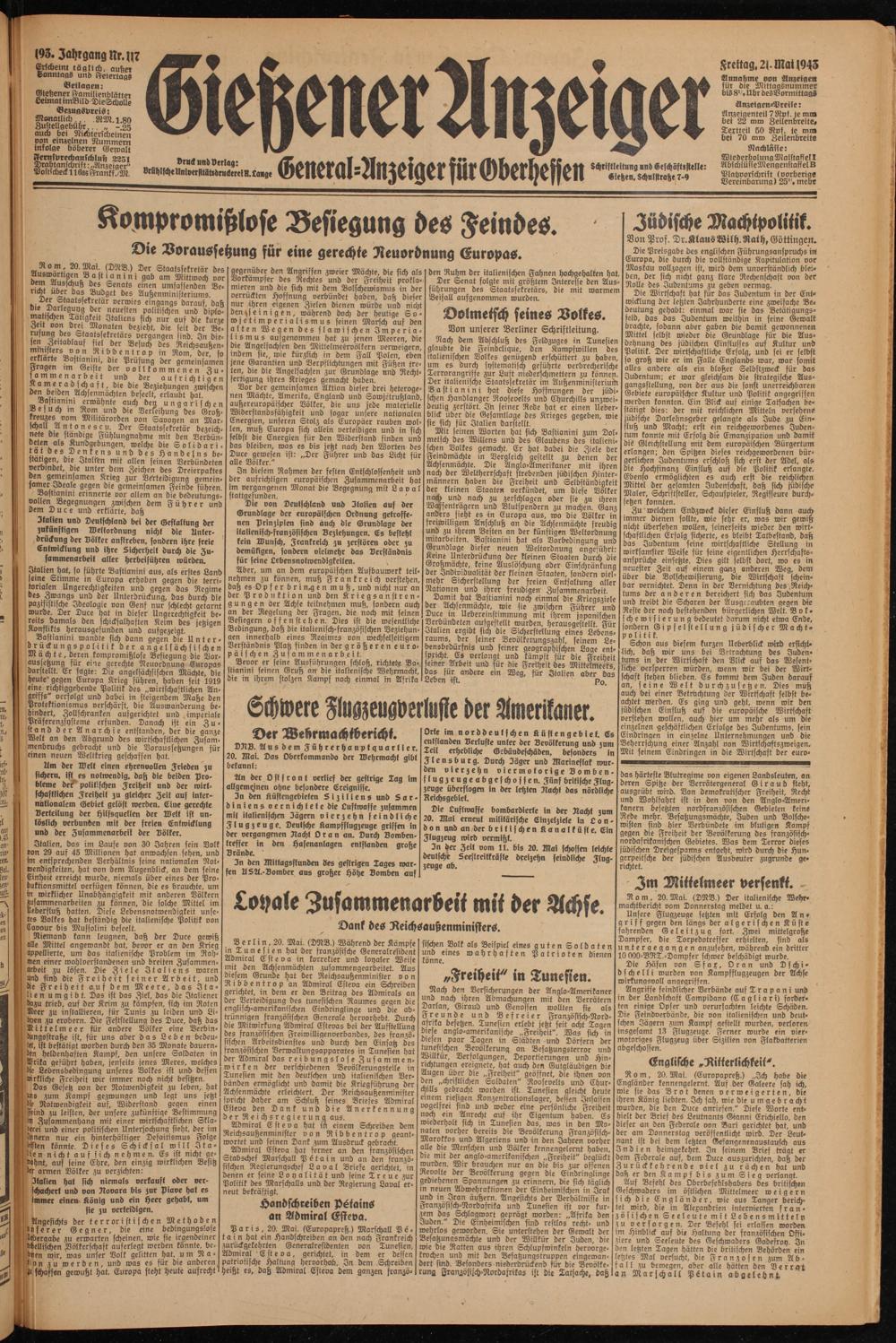 Gießener Anzeiger. 1868-1943