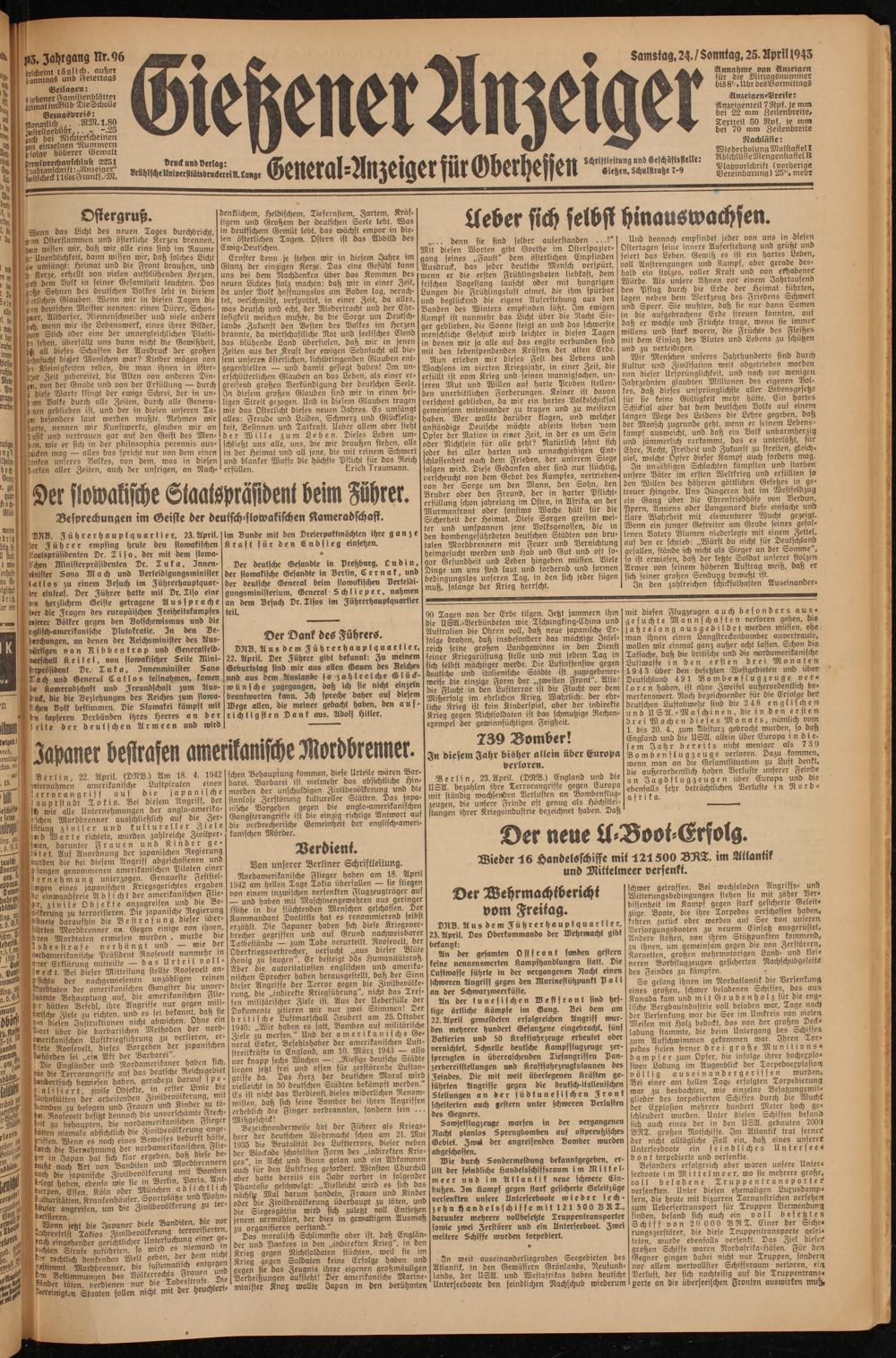 Gießener Anzeiger. 1868-1943